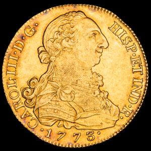 Carlos III. 8 Escudos (27,11 g.). Madrid. 1773. Ensayador P·J. AC-1958. EBC+/SC. Brillo original. Buen ejemplar.