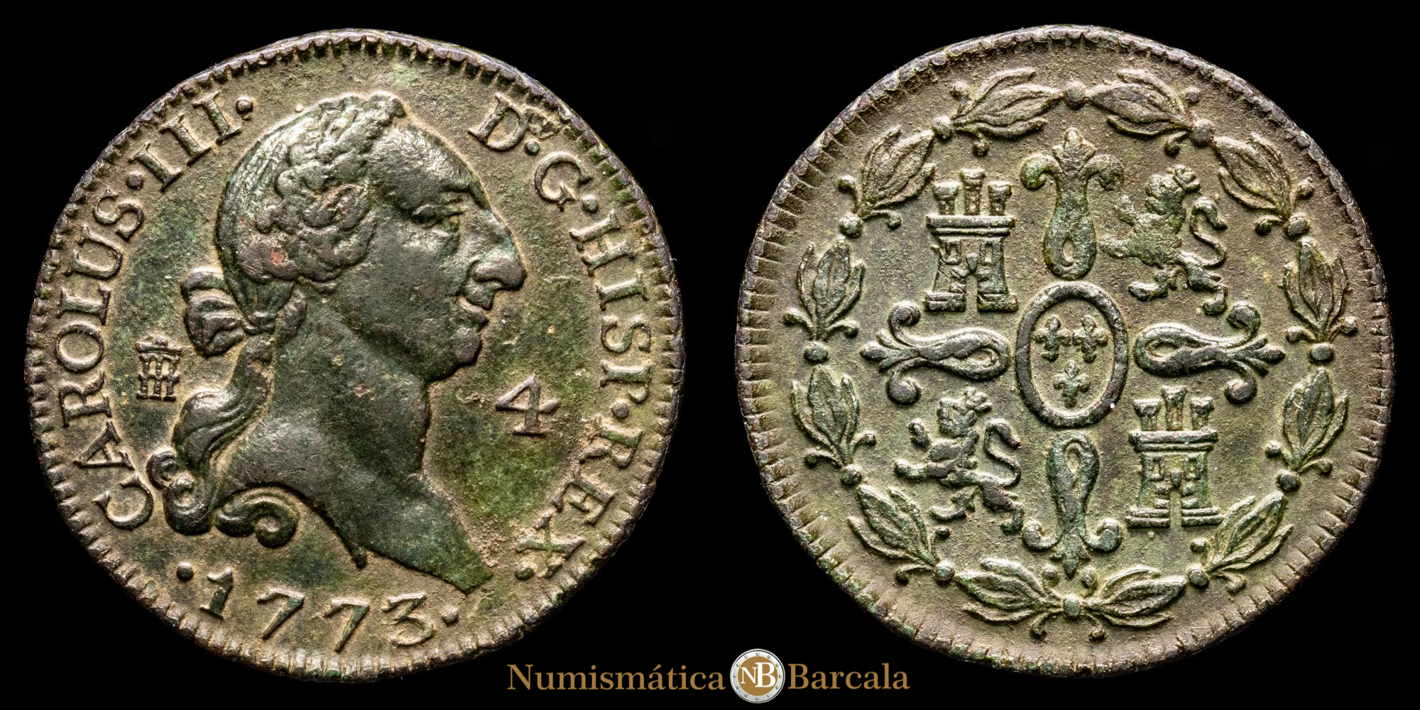 Numismática Barcala > Productos > Monarquia Española > Borbones > 1759-1788 Carlos III > Carlos III. 4 Maravedis. (5,13 g.). Segovia. 1773. Aureo y Calicó-53. MBC+.
