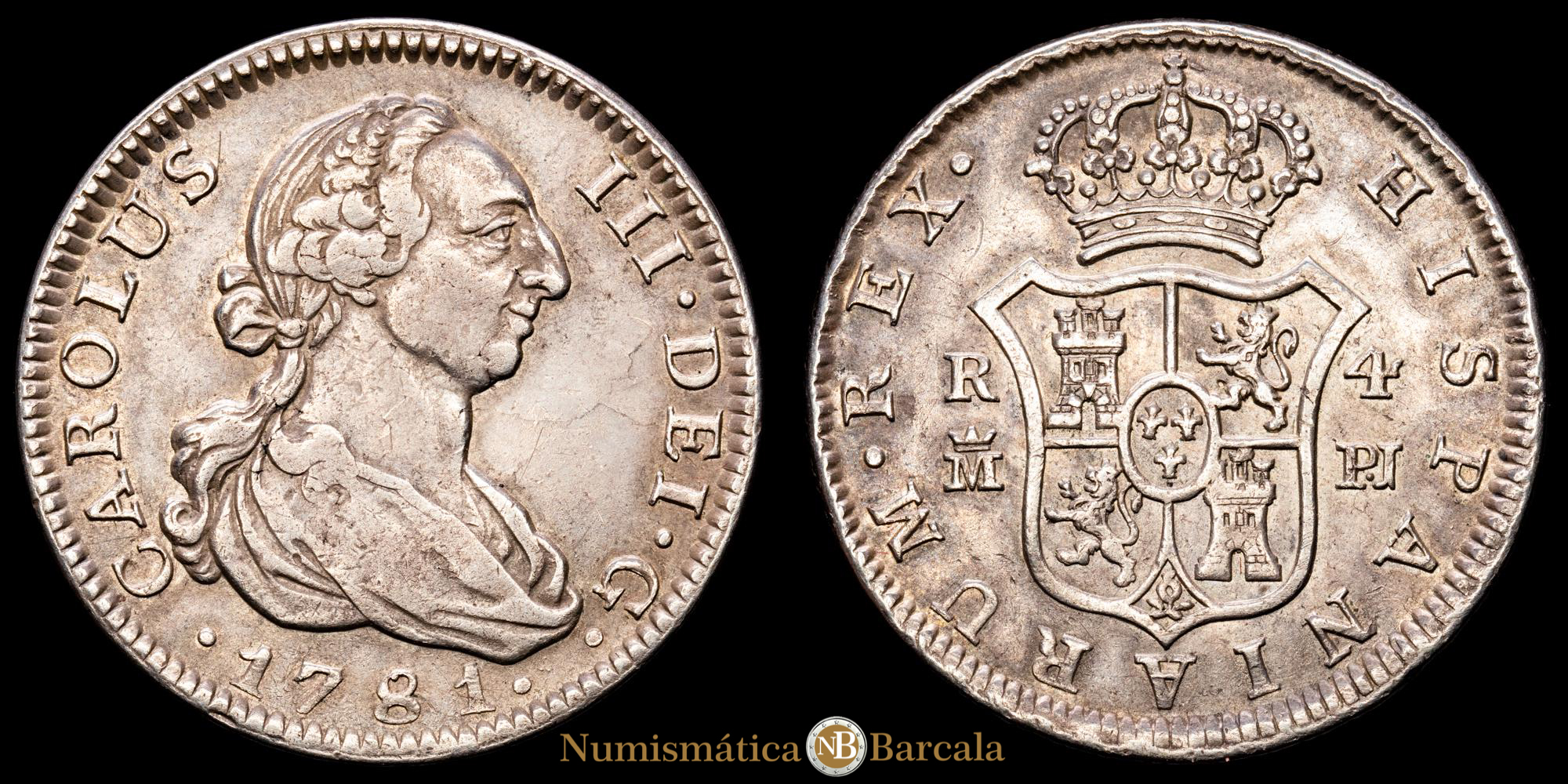Carlos III. 4 Reales. (13,81 g.). Madrid. 1781. Ensyador P·J. Aureo y Calicó 864. MBC+. Escasa. Bello tono.