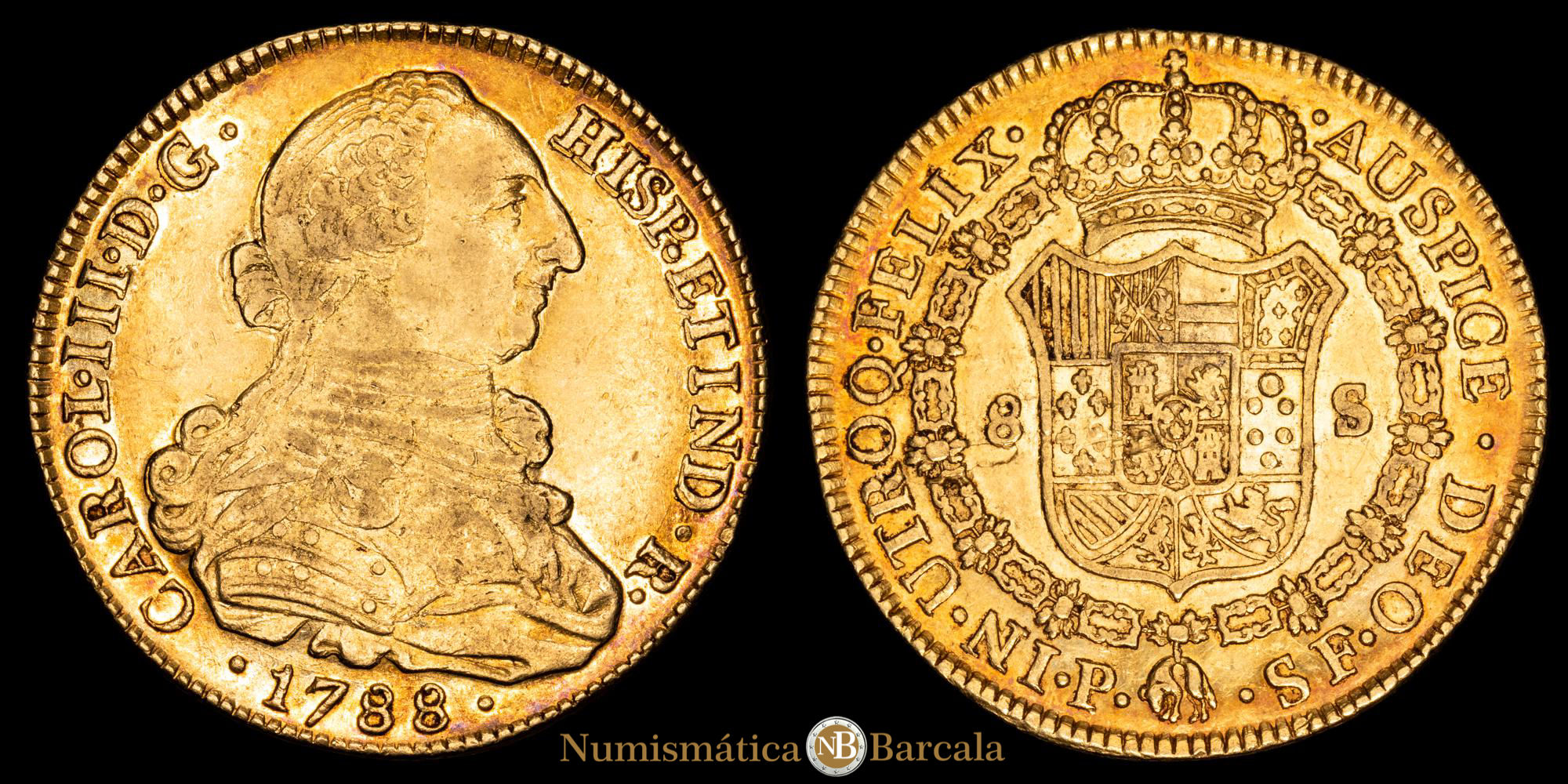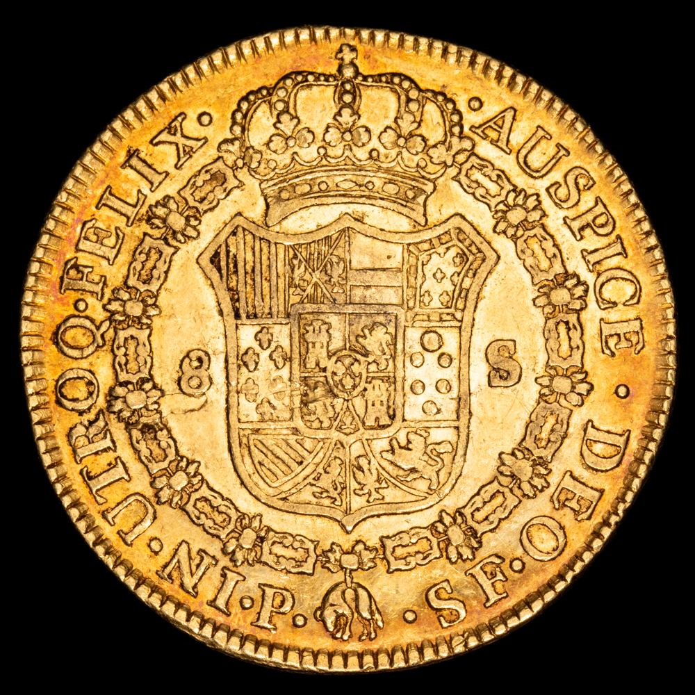 Carlos III. 8 Escudos. (26,98 g.). Popayán (Colombia). 1788. Ensayador S·F. AC-2058. EBC. Restos de brillo original