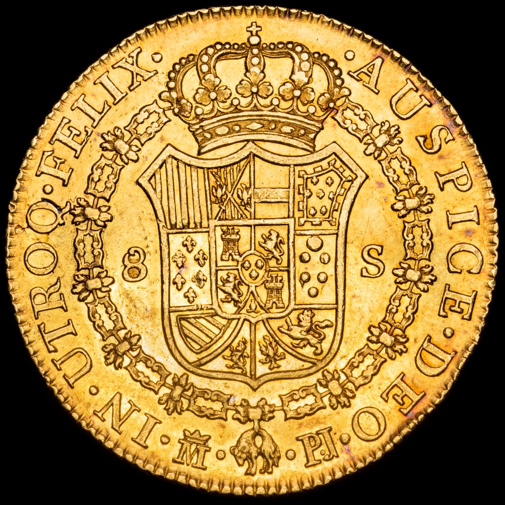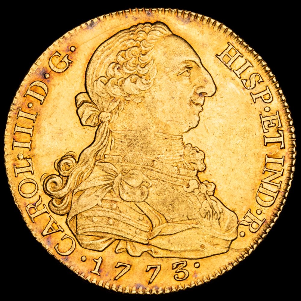 Numismática Barcala > Productos > Monarquia Española > Borbones > 1759-1788 Carlos III > Carlos III. 8 Escudos (27,11 g.). Madrid. 1773. Ensayador P·J. AC-1958. EBC+/SC. Brillo original. Buen ejemplar.