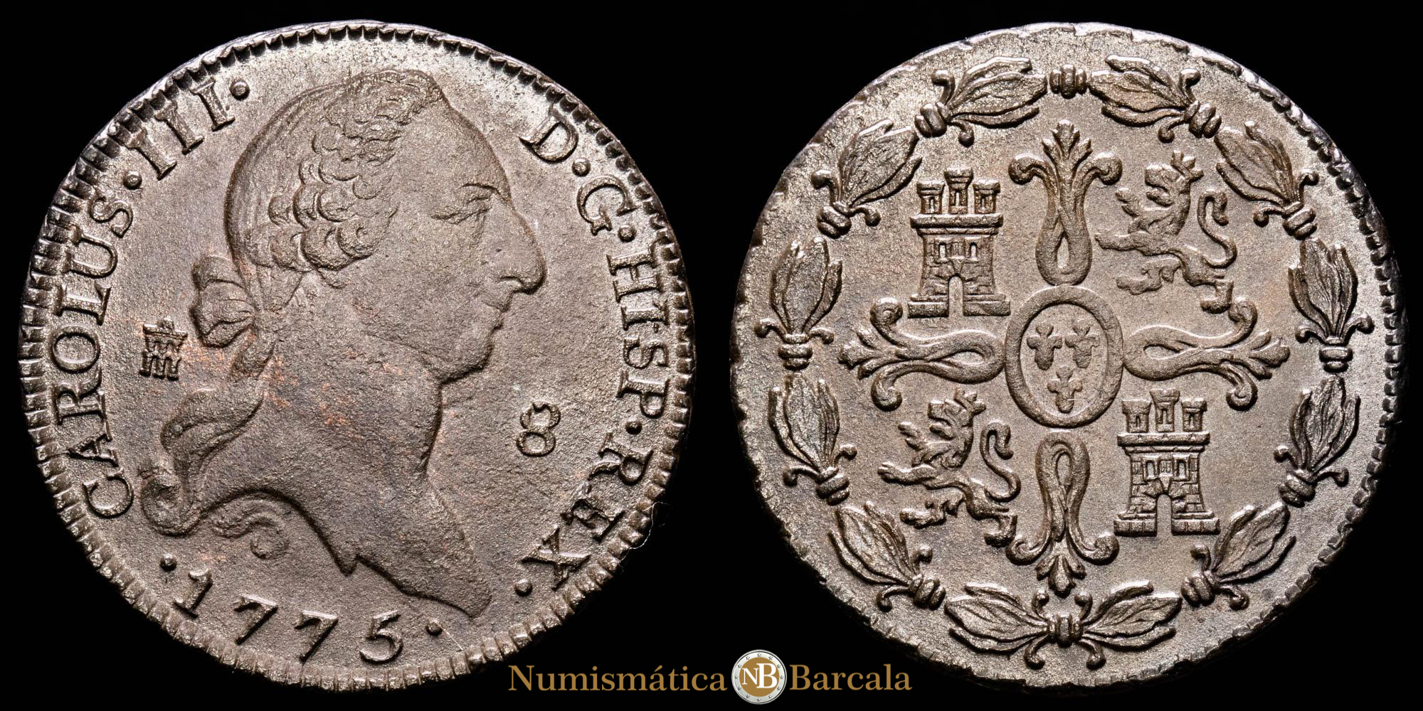 Carlos III. 8 Maravedís. (11,4 g.). Segovia. 1775. Aureo y Calicó – 72. MBC+.