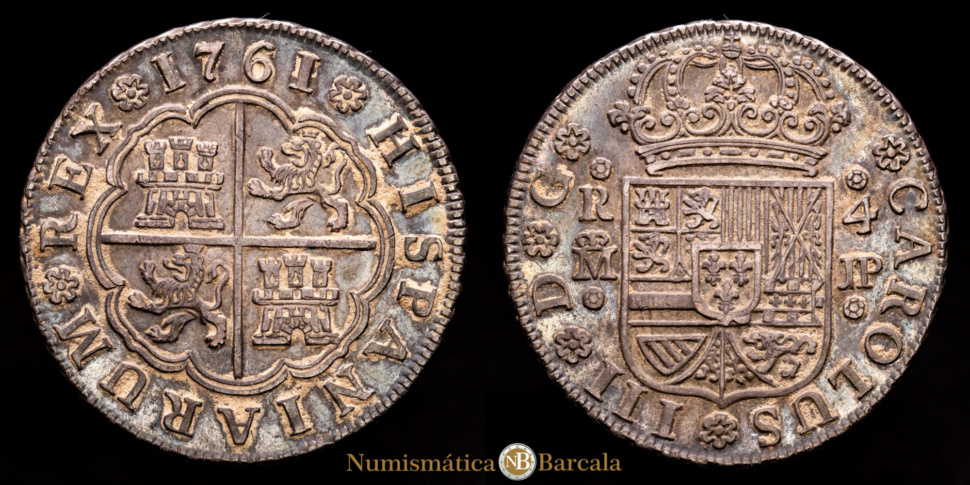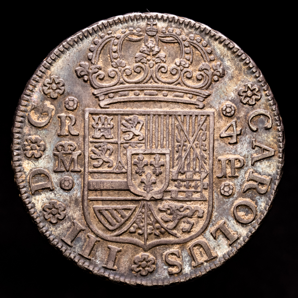 Numismática Barcala > Productos > Monarquia Española > Borbones > 1759-1788 Carlos III > Carlos III. 4 Reales. (13,56 g.). Madrid. 1761. Ensayador J·P. Aureo y Calicó-853. EBC-.Preciosa Pátina. Ex. Baldomero de la Fuente.