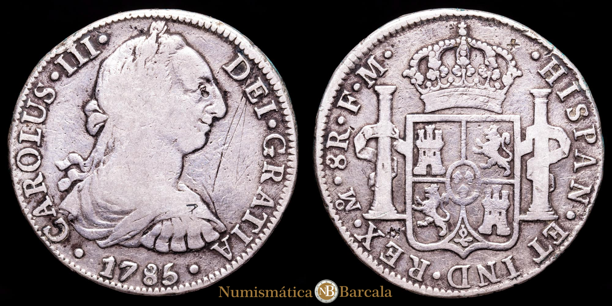 Carlos III. 8 Reales. (26,44 g.). México. 1785. Ensayador F·M. AC-1129. MBC-.