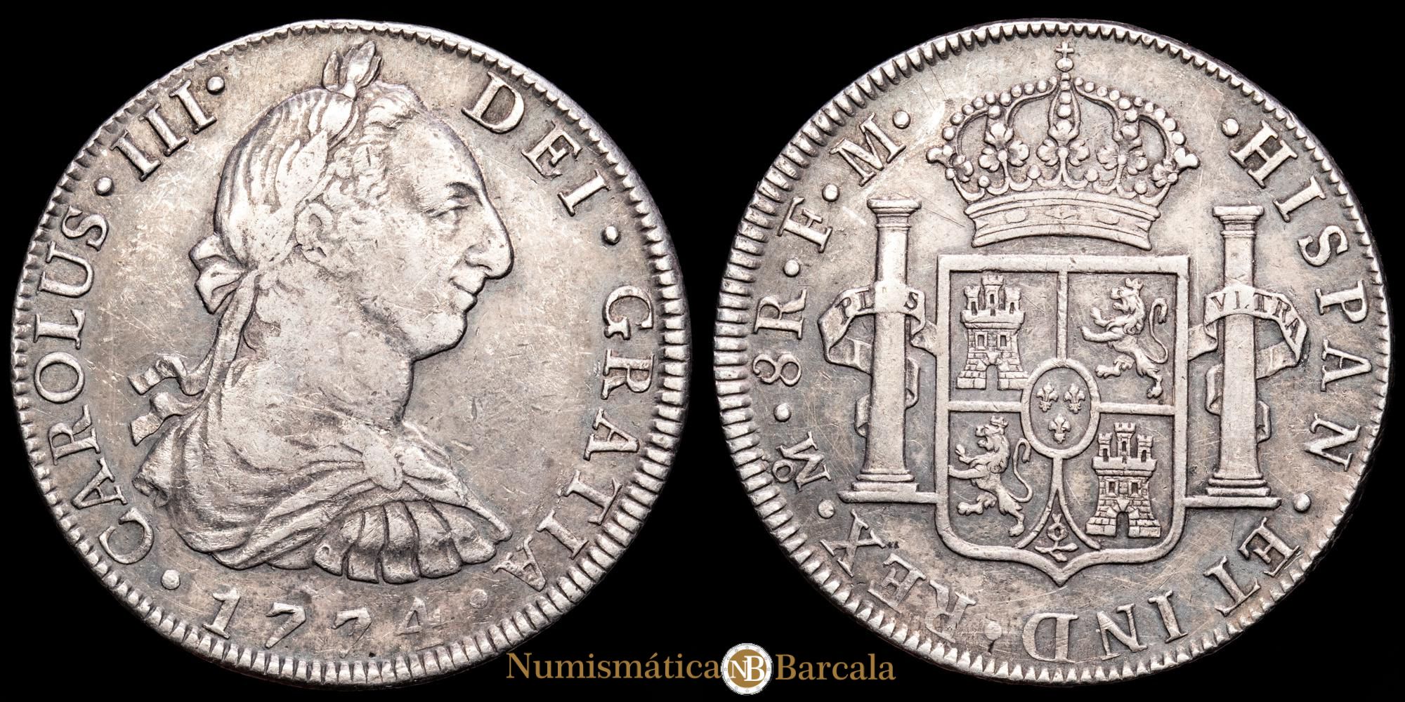Carlos III. 8 Reales. (26,75 g.). México. 1774. Ensayador F·M. AC-1108. MBC+.
