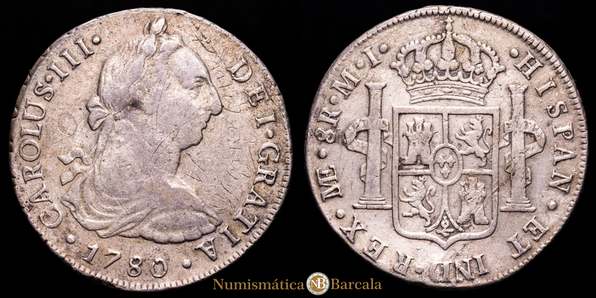 Carlos III. 8 Reales. (26,77 g.). Lima. 1780. Ensayador M·I. AC-1047. MBC. Grafitis en anverso.