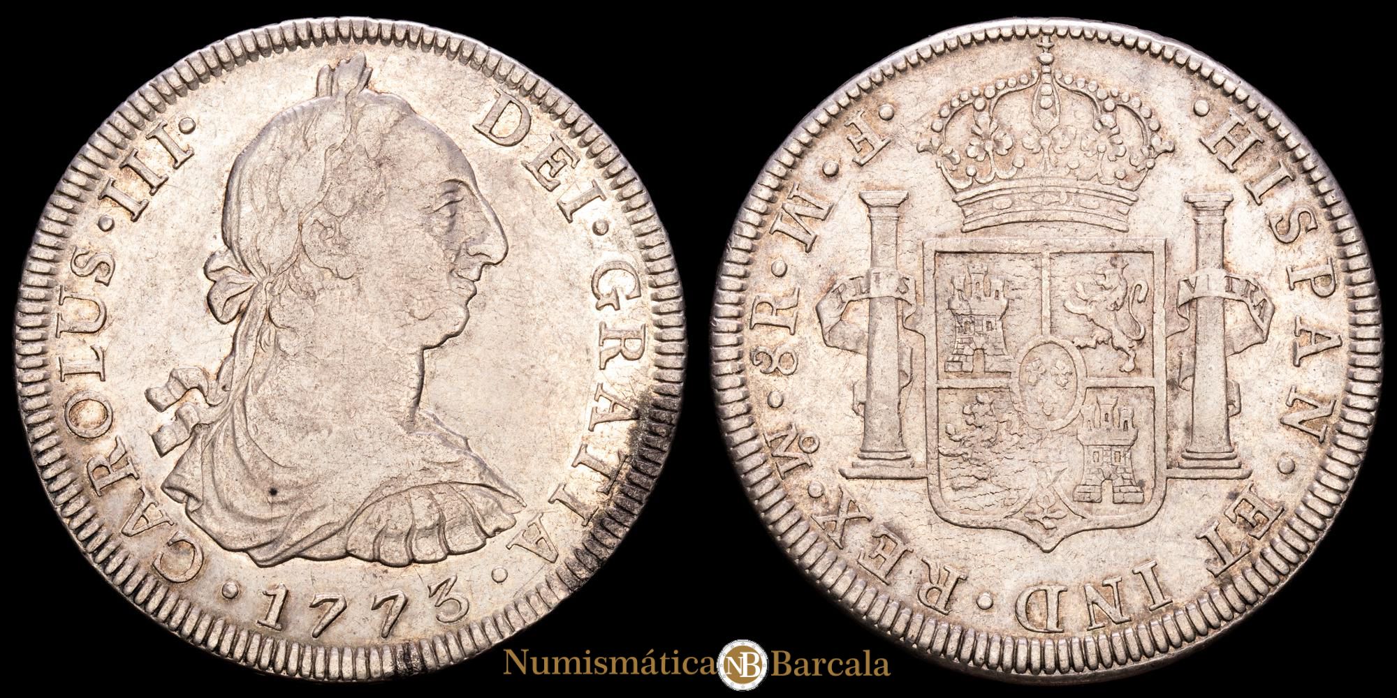 Carlos III. 8 Reales (26,77 g.). México. 1773. Ensayador F·M. AC-1106. MBC+. Ensayadores invertidos.