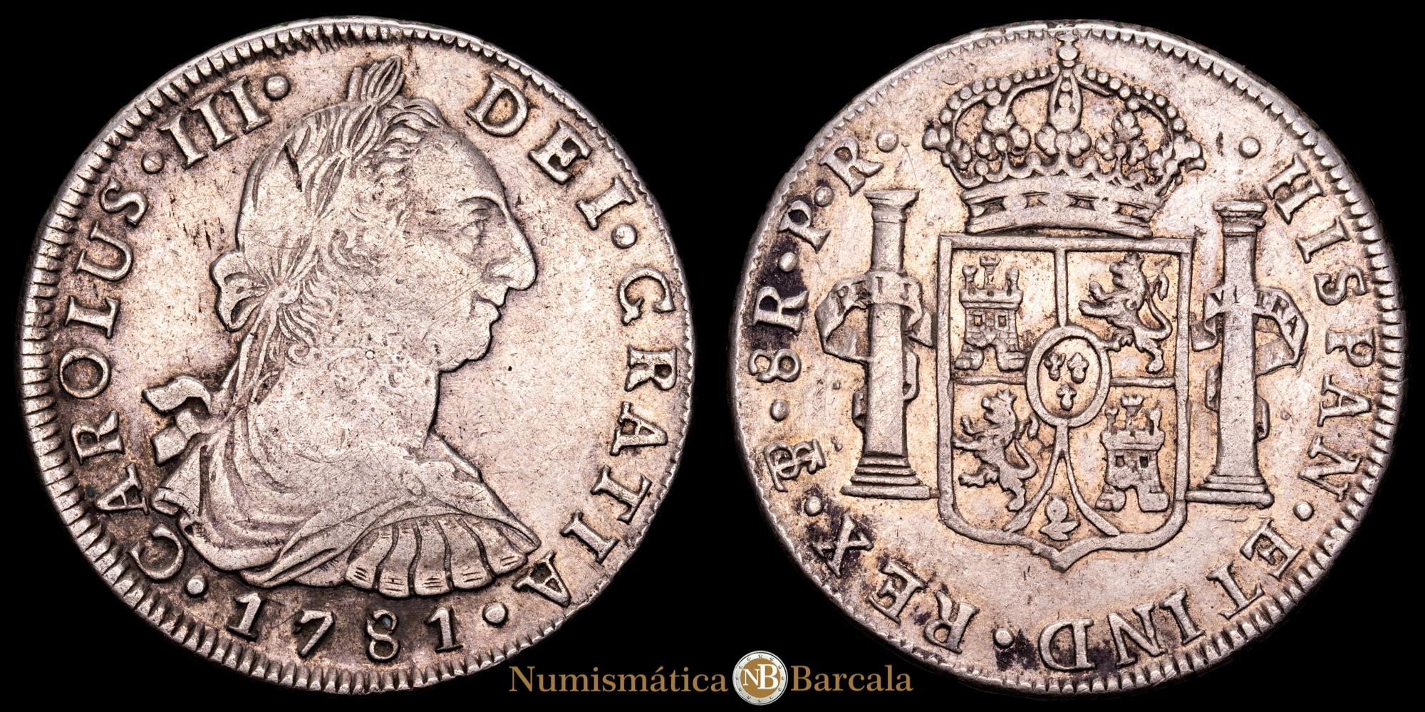 Numismática Barcala > Productos > Monarquia Española > Borbones > 1759-1788 Carlos III > Carlos III. 8 Reales. (26,81 g.). Potosí. 1781. Ensayador P·R. AC-1180. MBC/MBC+.