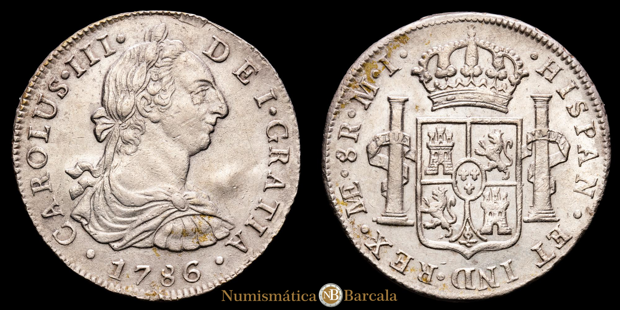 Numismática Barcala > Productos > Monarquia Española > Borbones > 1759-1788 Carlos III > Carlos III. 8 Reales. (26,86 g.). Lima. 1786. Ensayador M·I. Aureo y Calicó-1055. MBC+. Pequeñas marcas