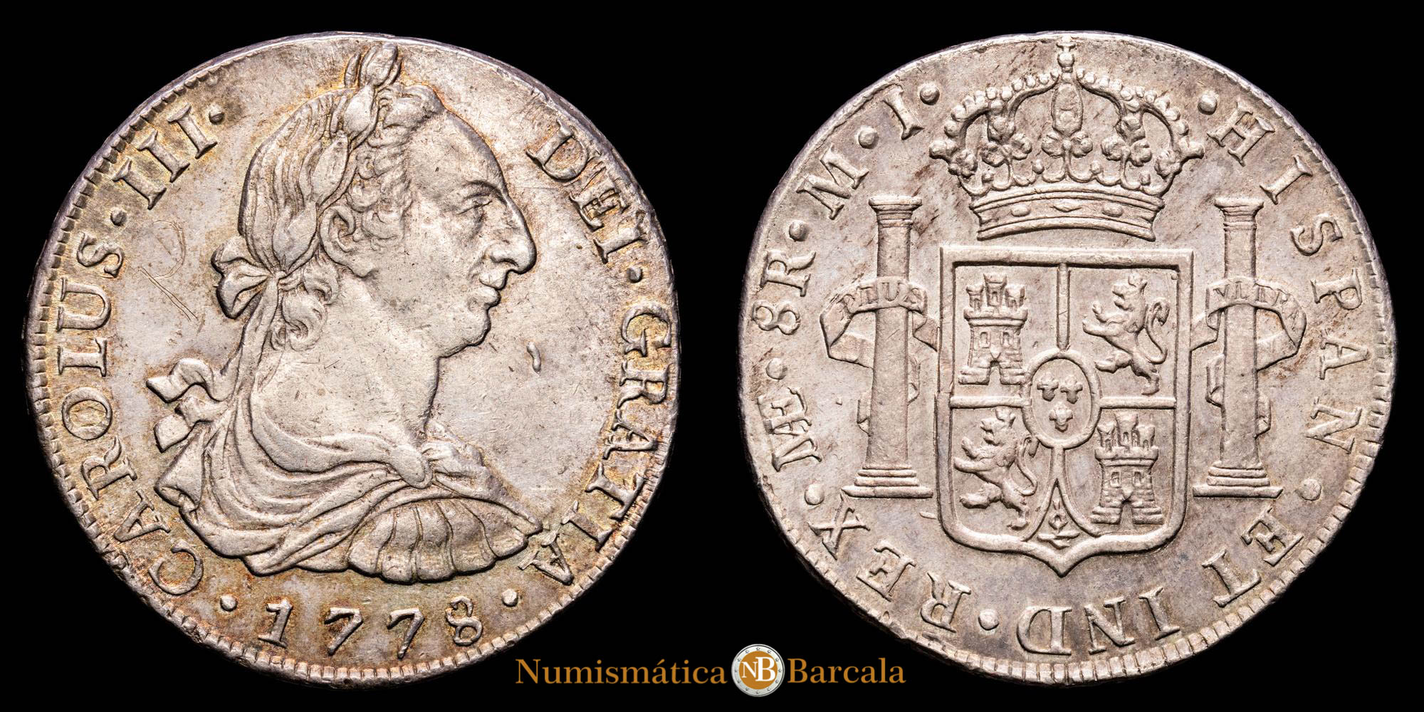 Numismática Barcala > Productos > Monarquia Española > Borbones > 1759-1788 Carlos III > Carlos III. 8 Reales. (26,89 g.). Lima. 1778. Ensayador M·J. Aureo y Calico – 1044. EBC-.