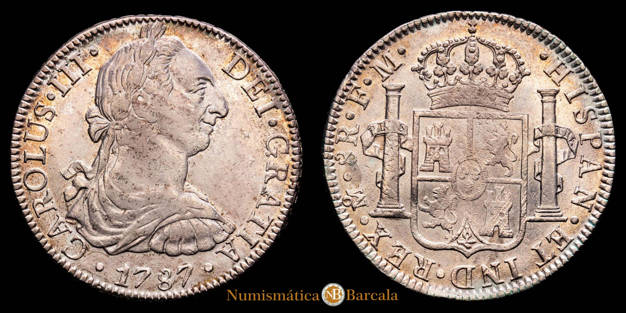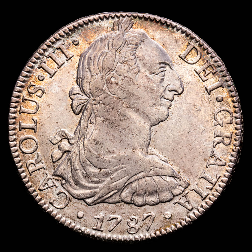 Carlos III. 8 Reales. (26,92 g.). México. 1787. Ensayador F·M. Aureo y Calicó – 1131. EBC-. Suave pátina