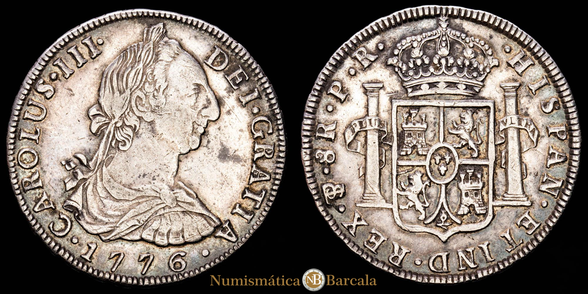 Numismática Barcala > Productos > Monarquia Española > Borbones > 1759-1788 Carlos III > Carlos III. 8 Reales. (26,96 g.). Potosí. 1776. Ensayador P·R. AC-1172. MBC+.