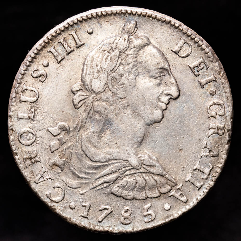 Carlos III. 8 Reales. (26,97 g.). México. 1785. Ensayador F·M. Aureo y Calicó-1127. MBC+.