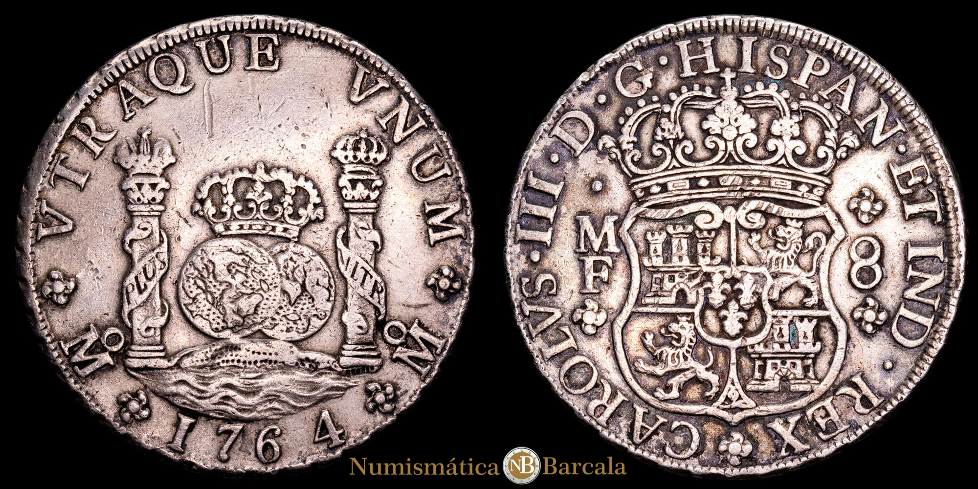 Carlos III. 8 Reales. (27,01 g.). México. 1764. Ensayador M·F. Aureo y Calicó-1087. MBC+.