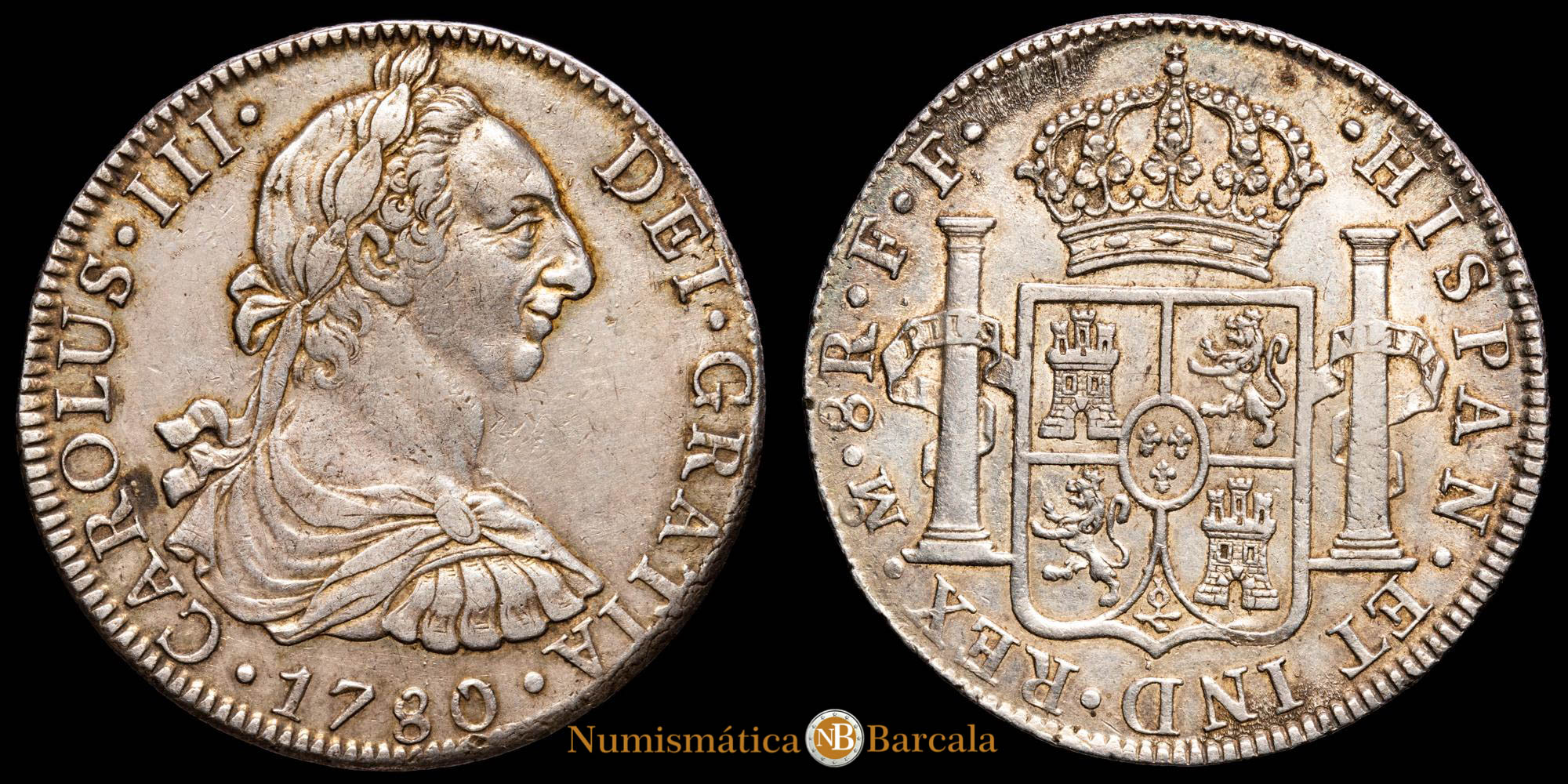 Numismática Barcala > Productos > Monarquia Española > Borbones > 1759-1788 Carlos III > Carlos III. 8 Reales. (27,03 g.). México. 1780. Ensayador F·F. AC-1120. MBC+. Tono. Ex Colección Baldomero de la Fuente