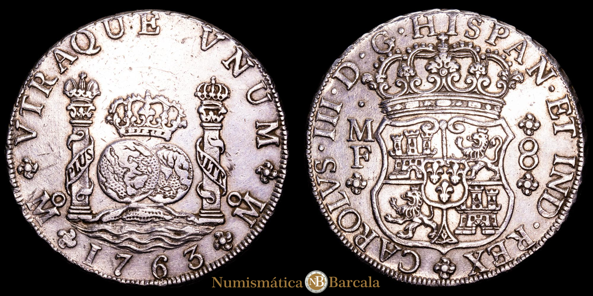 Numismática Barcala > Productos > Monarquia Española > Borbones > 1759-1788 Carlos III > Carlos III. 8 Reales. (27,16 g.). México. 1763. Ensayador M·F. AC-1086. MBC+.