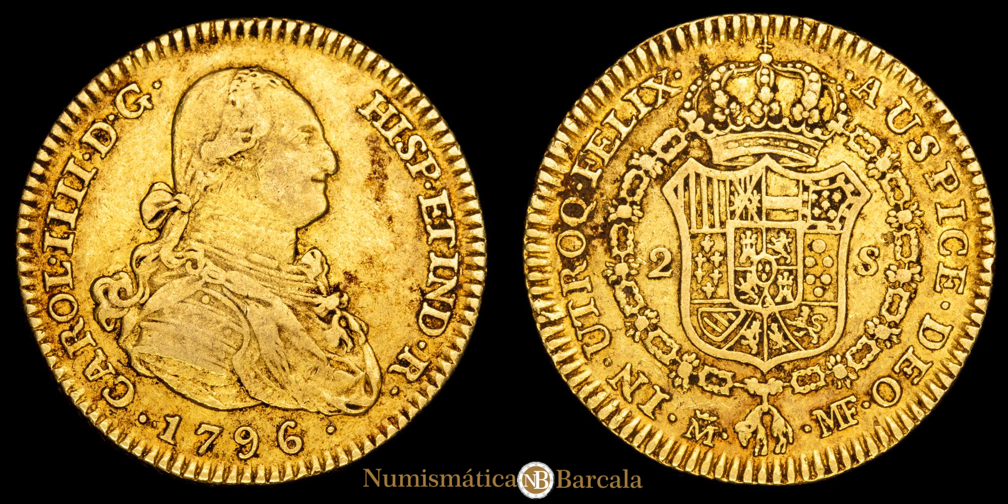 Numismática Barcala > Productos > Monarquia Española > Borbones > 1788-1808 Carlos IV > Carlos IIII. 2 escudos (6,76 g.). Madrid. 1796. Ensayador M·F. CA-1288. MBC+.