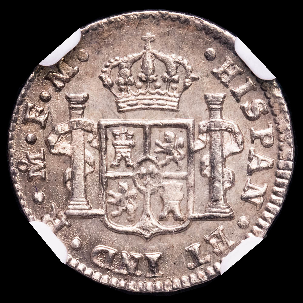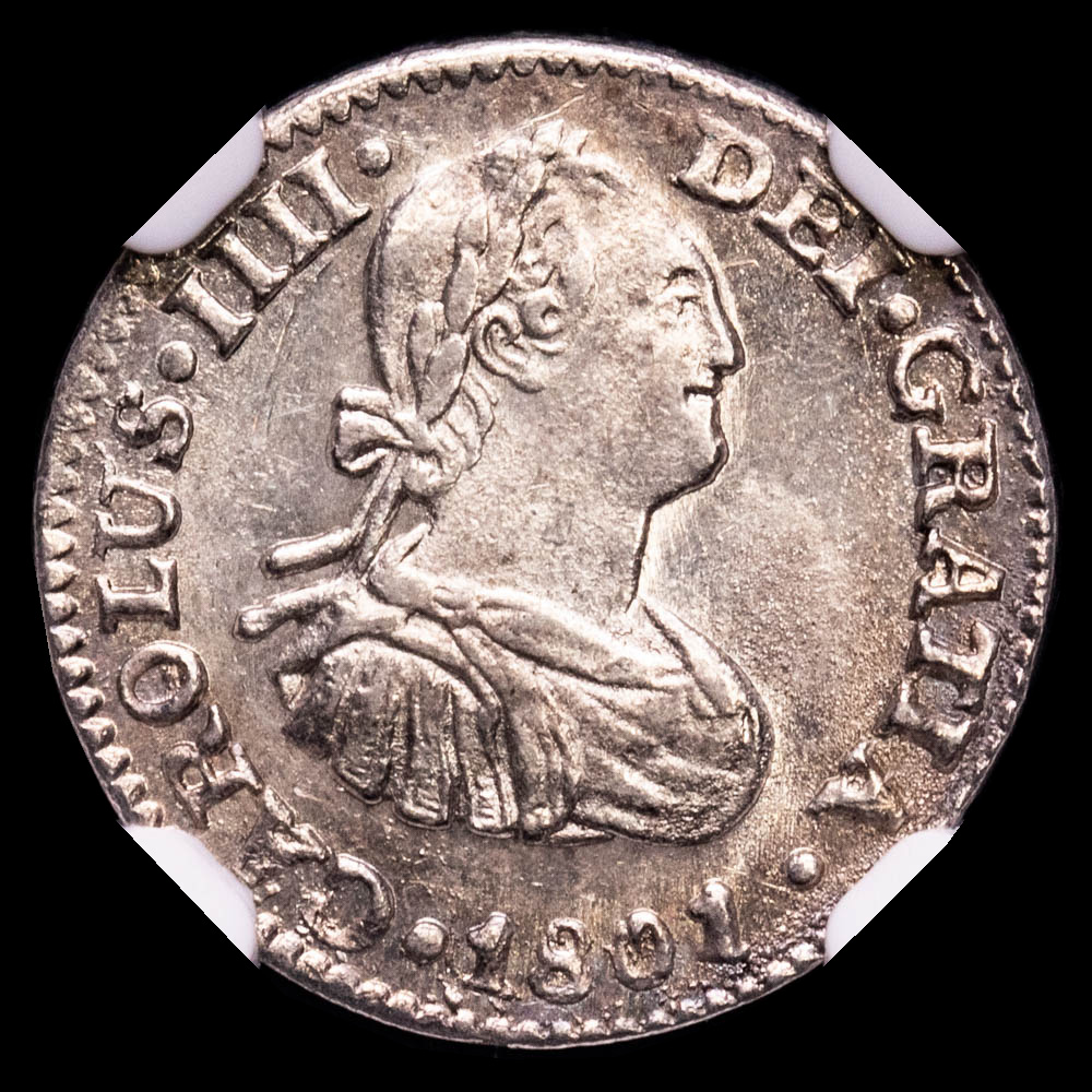 Carlos IV. 1/2 Real. ( g.). México. 1801. Ensayador F·M. Encapsulado por NGC MS 64.
