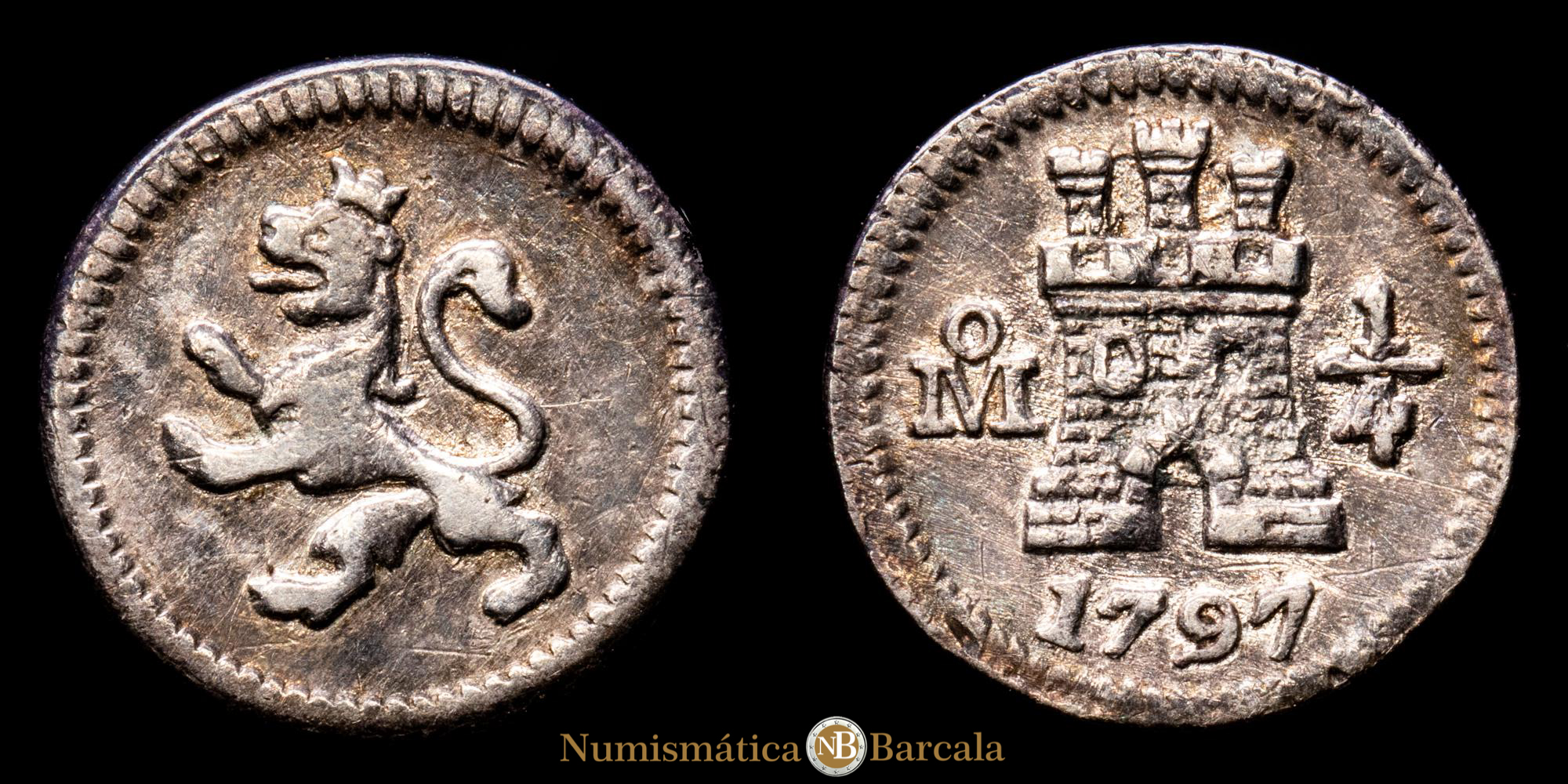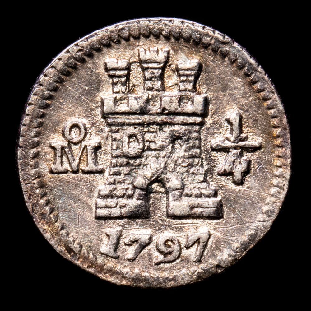 Numismática Barcala > Productos > Monarquia Española > Borbones > 1788-1808 Carlos IV > Carlos IV. 1/4 Real. (0,83 g.). México. 1797. Aureo y Calicó-122. MBC+.