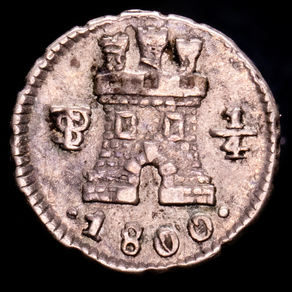 Carlos IV. 1/4 Real (0,86 g.). Potosí (Bolivia). 1800. Ensayador P. AC-149. EBC.