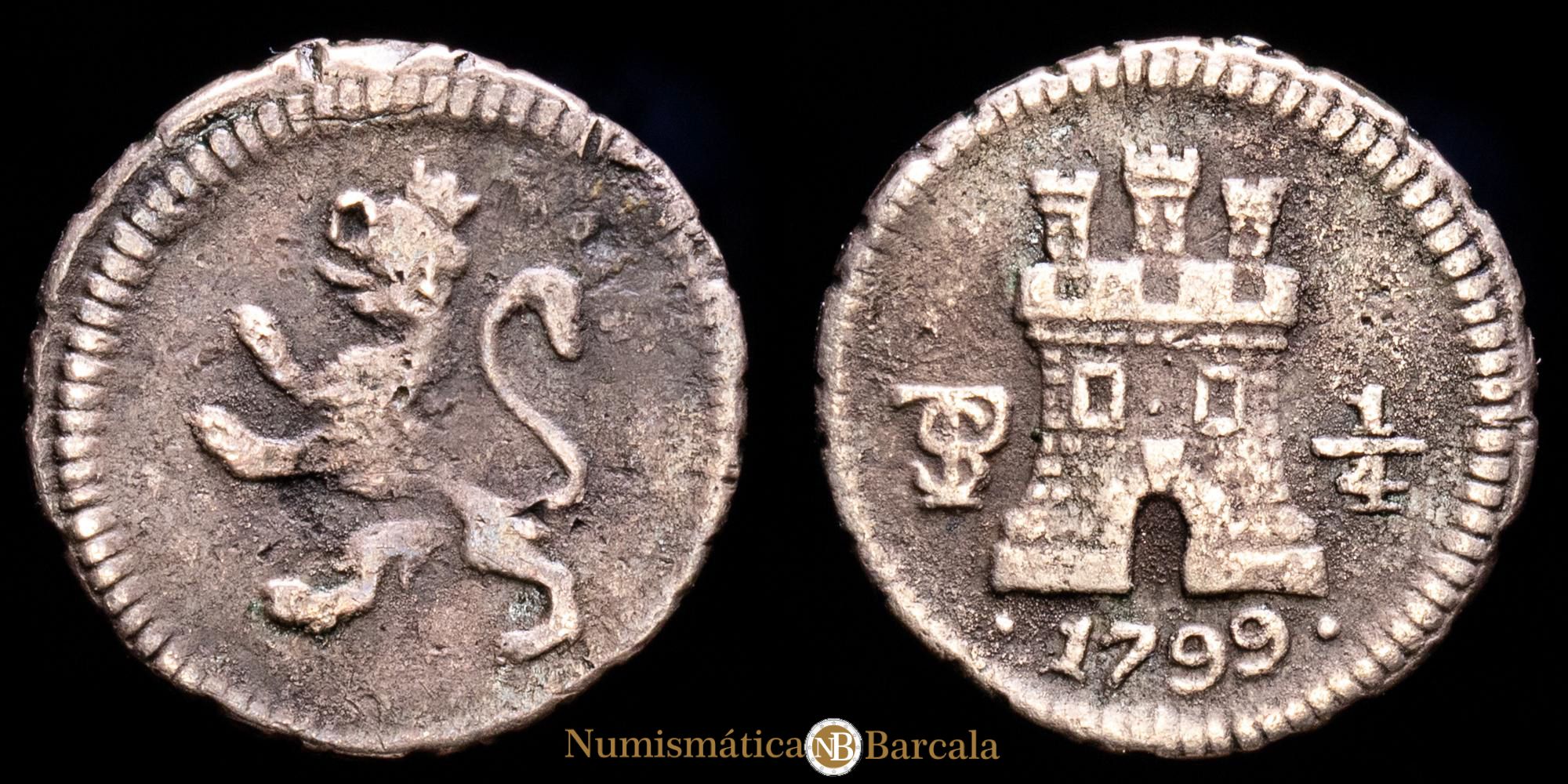 Carlos IV. 1/4 Real (0,87 g.). Potosí (Bolivia). 1799. Ensayador P. AC-147. MBC+.