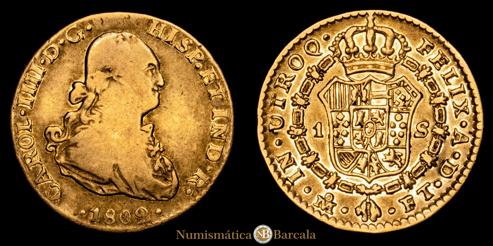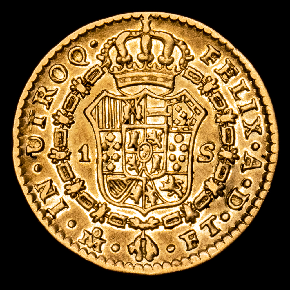 Carlos IV. 1 Escudo. (3,33 g.). México. 1802. Ensayador F·T. Aureo y Calicó-1135. BC+/MBC. Escasa