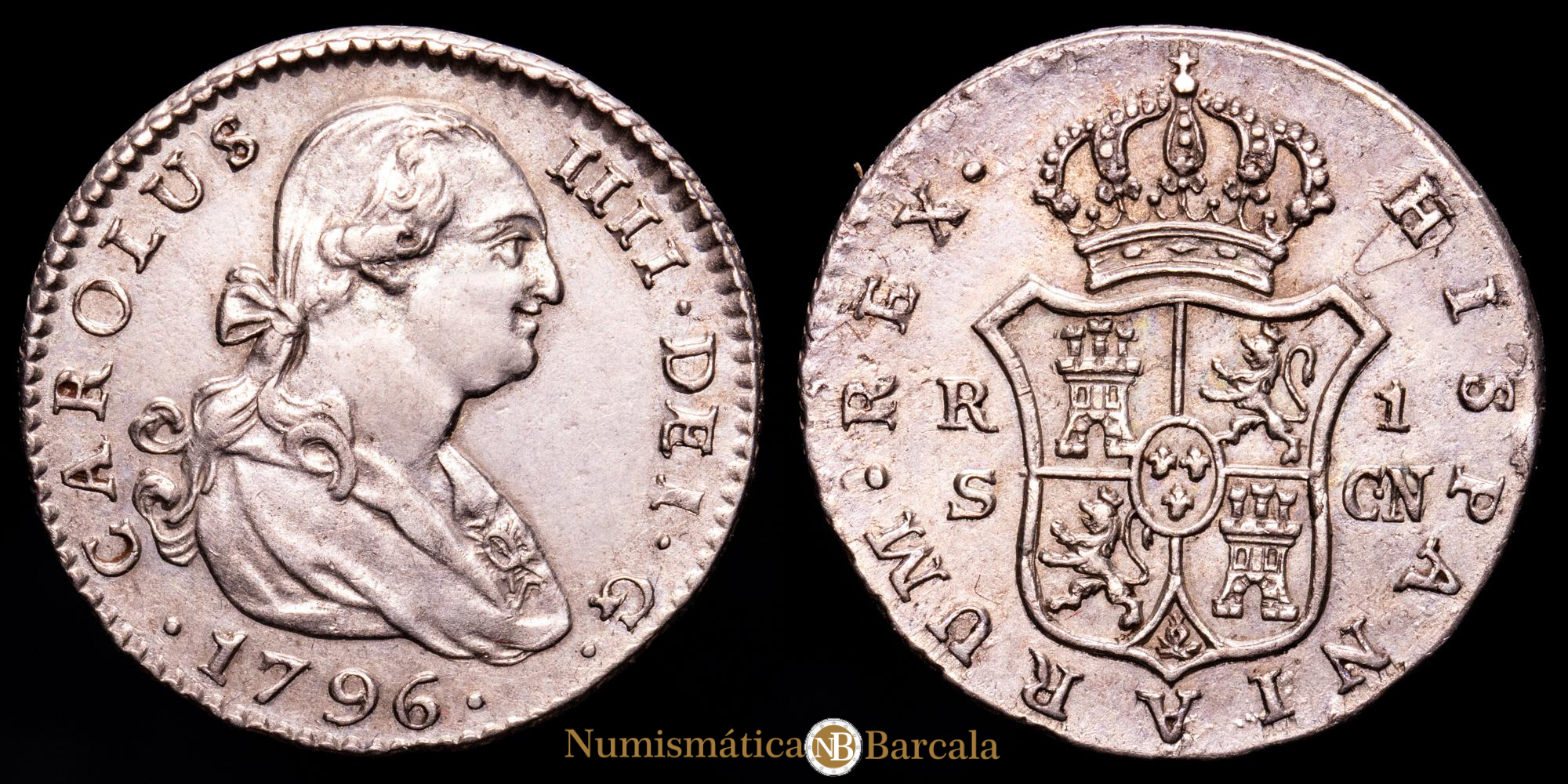 Carlos IV. 1 Real. (2,93 g.). Sevilla. 1796. Ensayador C·N. CAL-1218. EBC. Restos de brillo original.