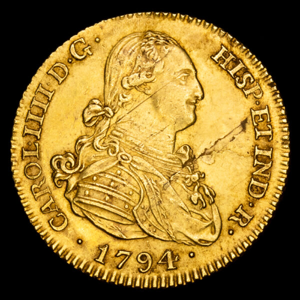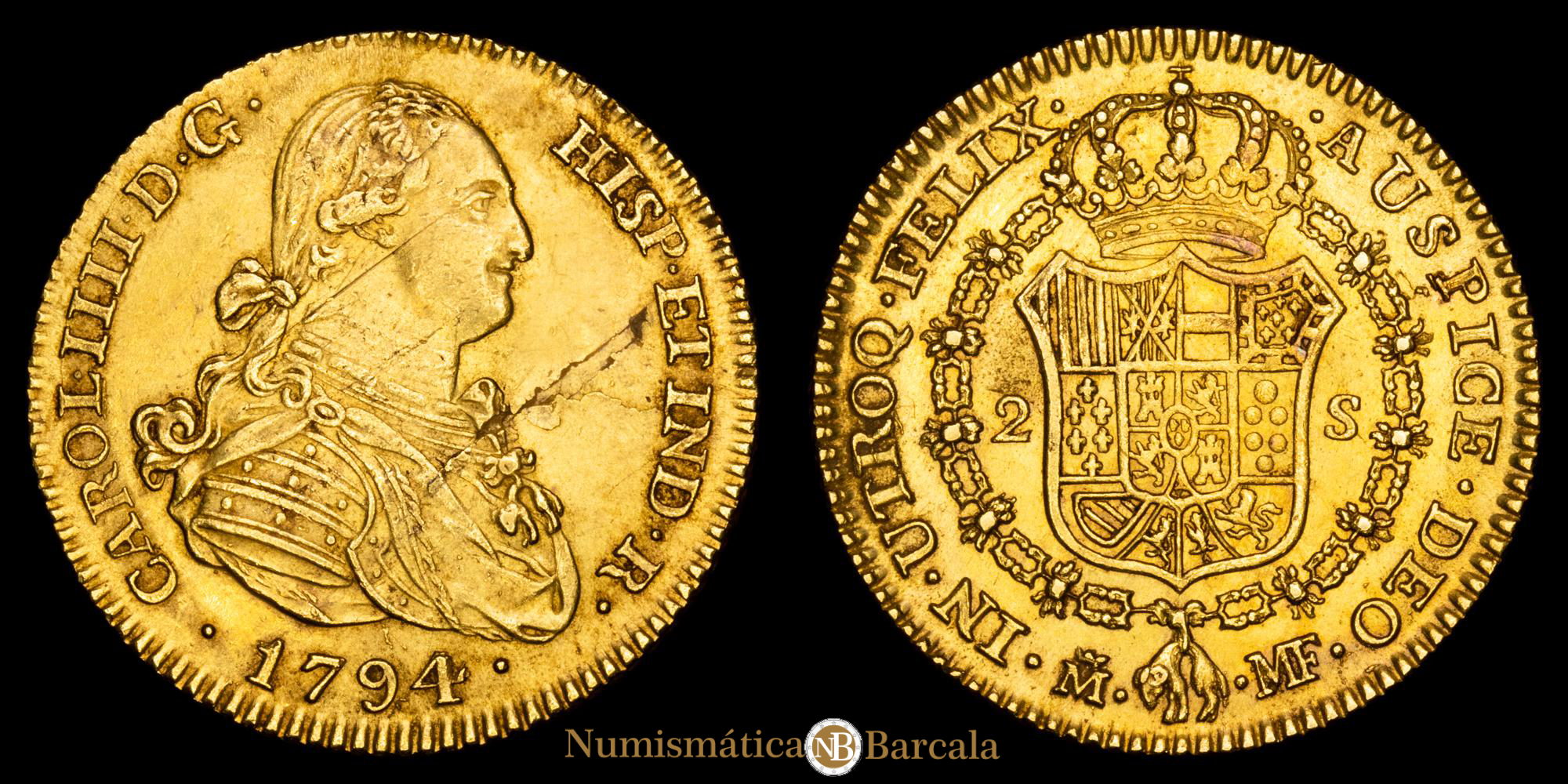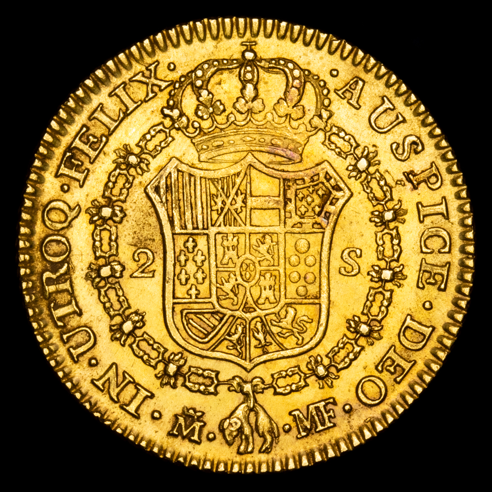 Carlos IV. 2 Escudos. (6,67g.). Madrid. 1794. Ensayador M·F. AC-1282. EBC. Hoja en anverso.