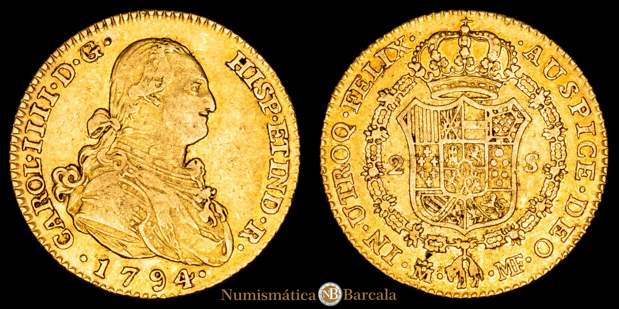 Carlos IV. 2 Escudos. (6,72 g.). Madrid. 1794. Ensayador M·F. AC-1282. MBC+.