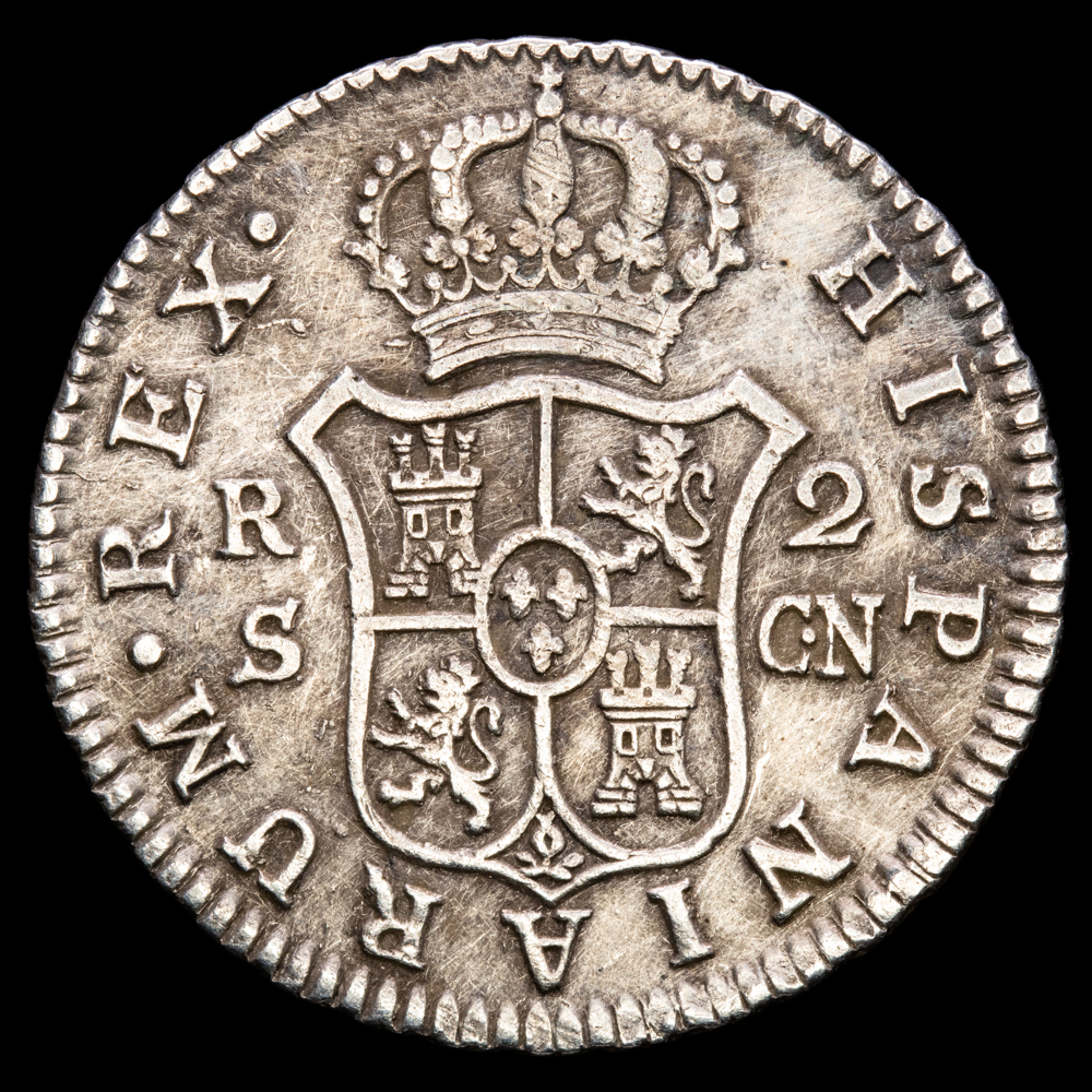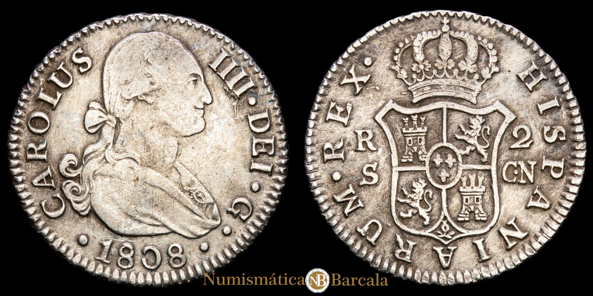 Carlos IV. 2 Reales (6,02 g.). 1808. Sevilla. Ensayador C·N. AC-728. MBC+