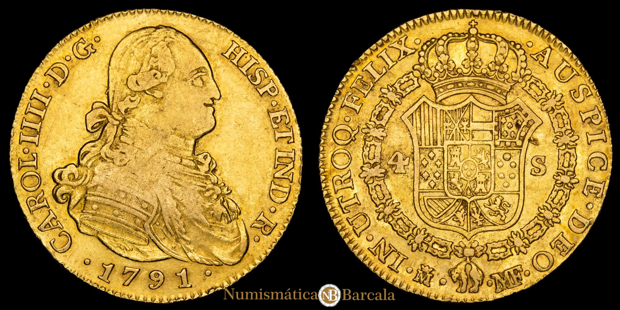Carlos IV. 4 escudos (13,34 g.). Madrid. 1791. Ensayador M·F. AC-1474. VF/VF+.