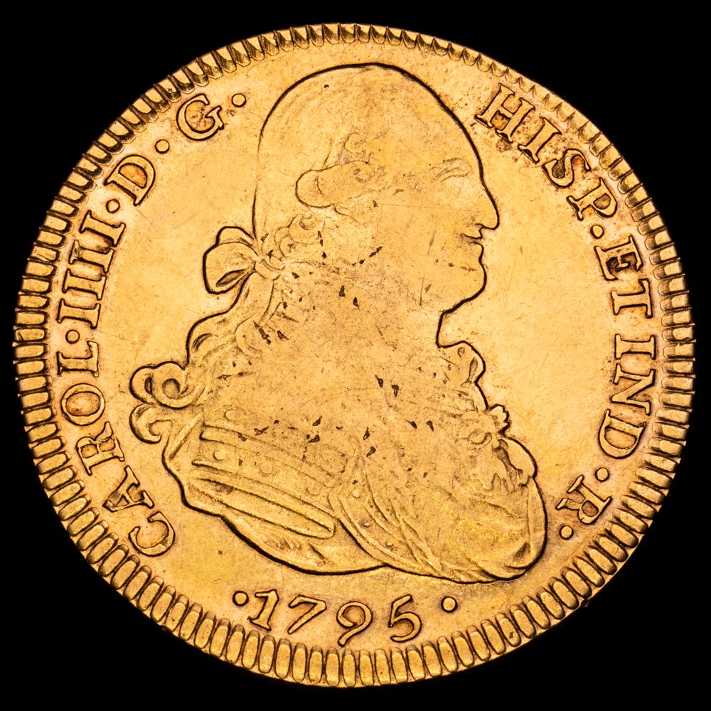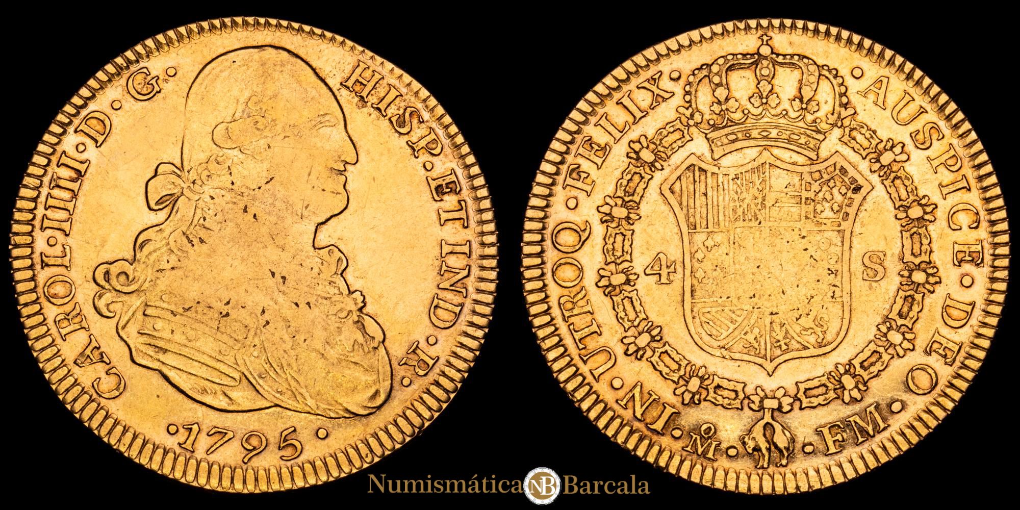Carlos IV. 4 Escudos (13,47 g.). México. 1795. Ensayador F·M. AC-1490. MBC+. Restos de brillo original. Rara.