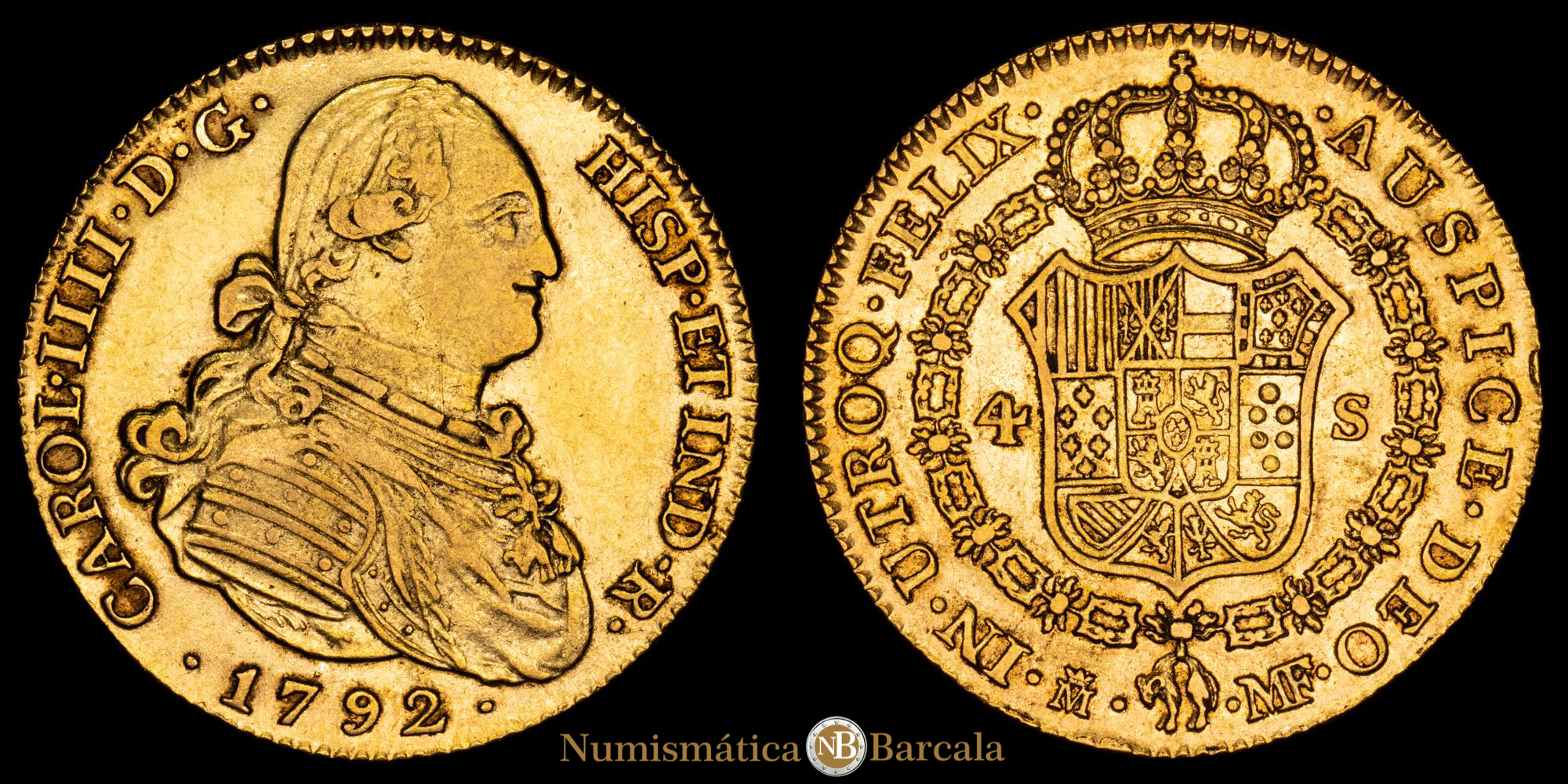 Carlos IV. 4 Escudos. (13,49 g.). Madrid. 1792. Ensayador M·F. Aureo y Calicó 1475. MBC+/EBC. Restos de brillo original.