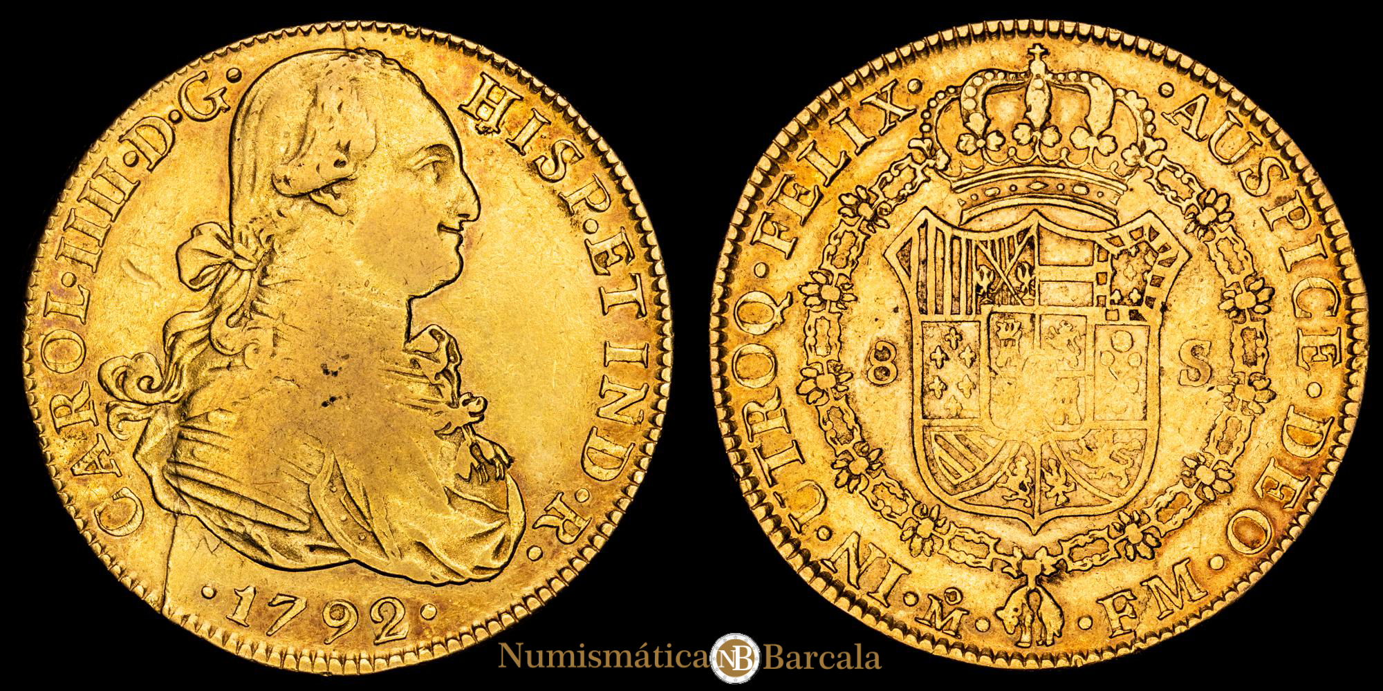 Carlos IV. 8 escudos (26,93 g.). México. 1792. Ensayador F·M. AC-1631. VF.