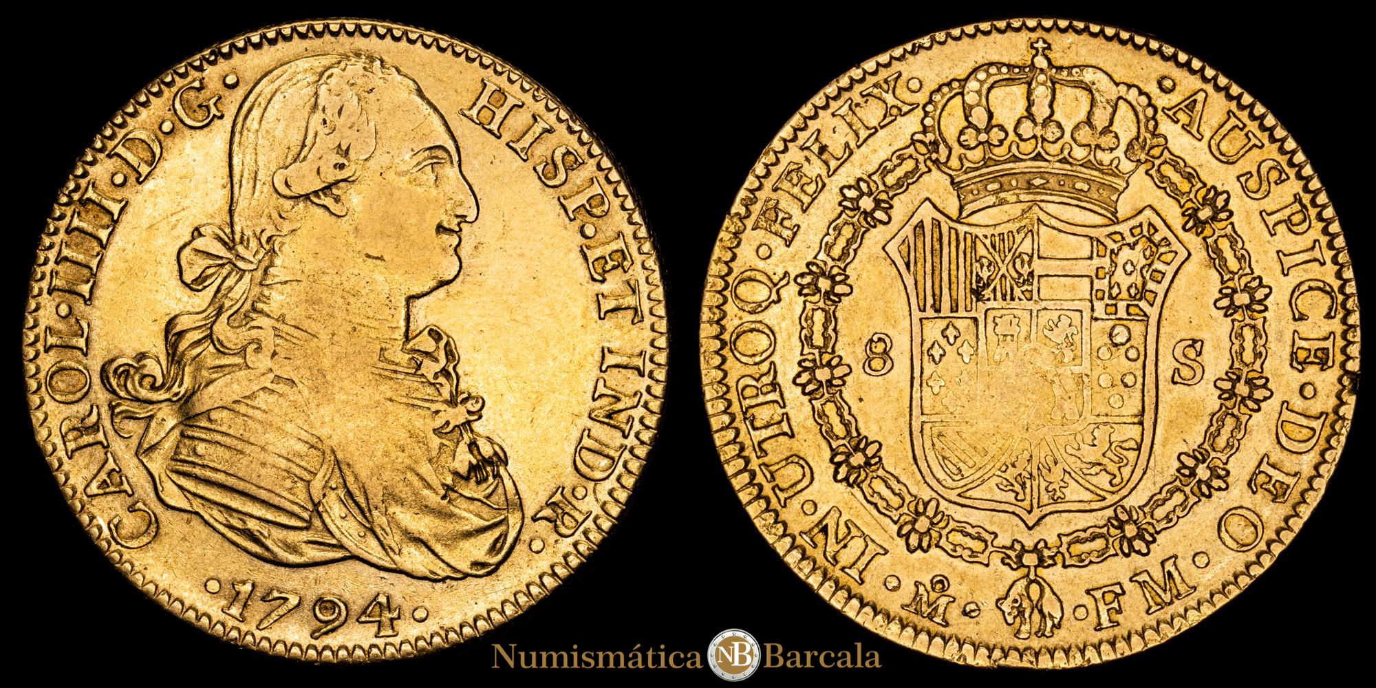 Carlos IV. 8 Escudos. (26,96 g.). México. 1794. Ensayador F·M. AC-1622. MBC+.