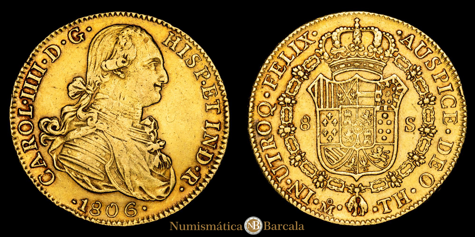 Numismática Barcala > Productos > Monarquia Española > Borbones > 1788-1808 Carlos IV > Carlos IV. 8 Escudos. (27,01 g.). México. 1806. Ensayador T·H. Aureo y Calico-1651. MBC+.