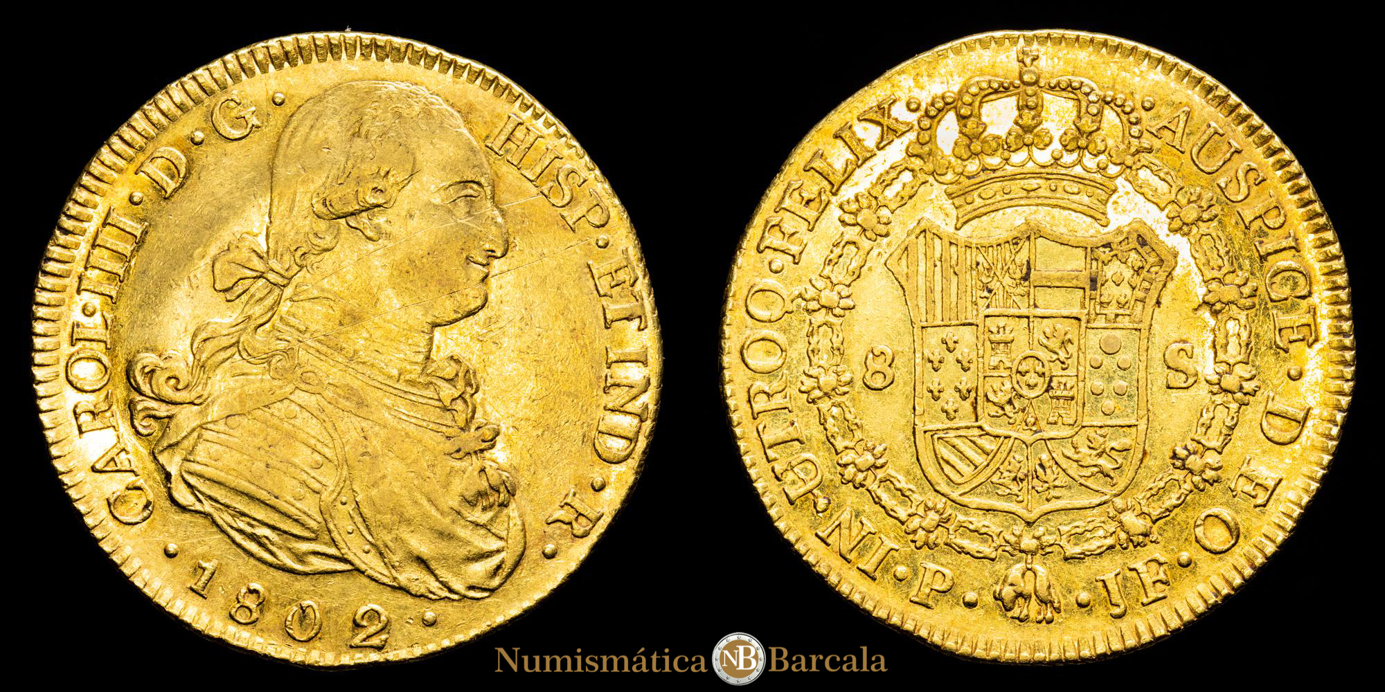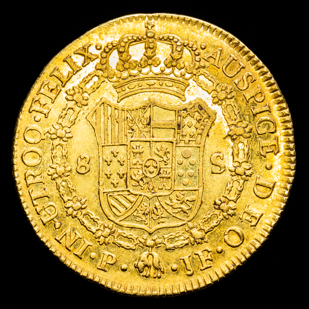 Carlos IV. 8 Escudos. (27,02 g.). Popayán. 1802. Ensayador J·F. AC-1676. EBC-/EBC+. Brillo original.
