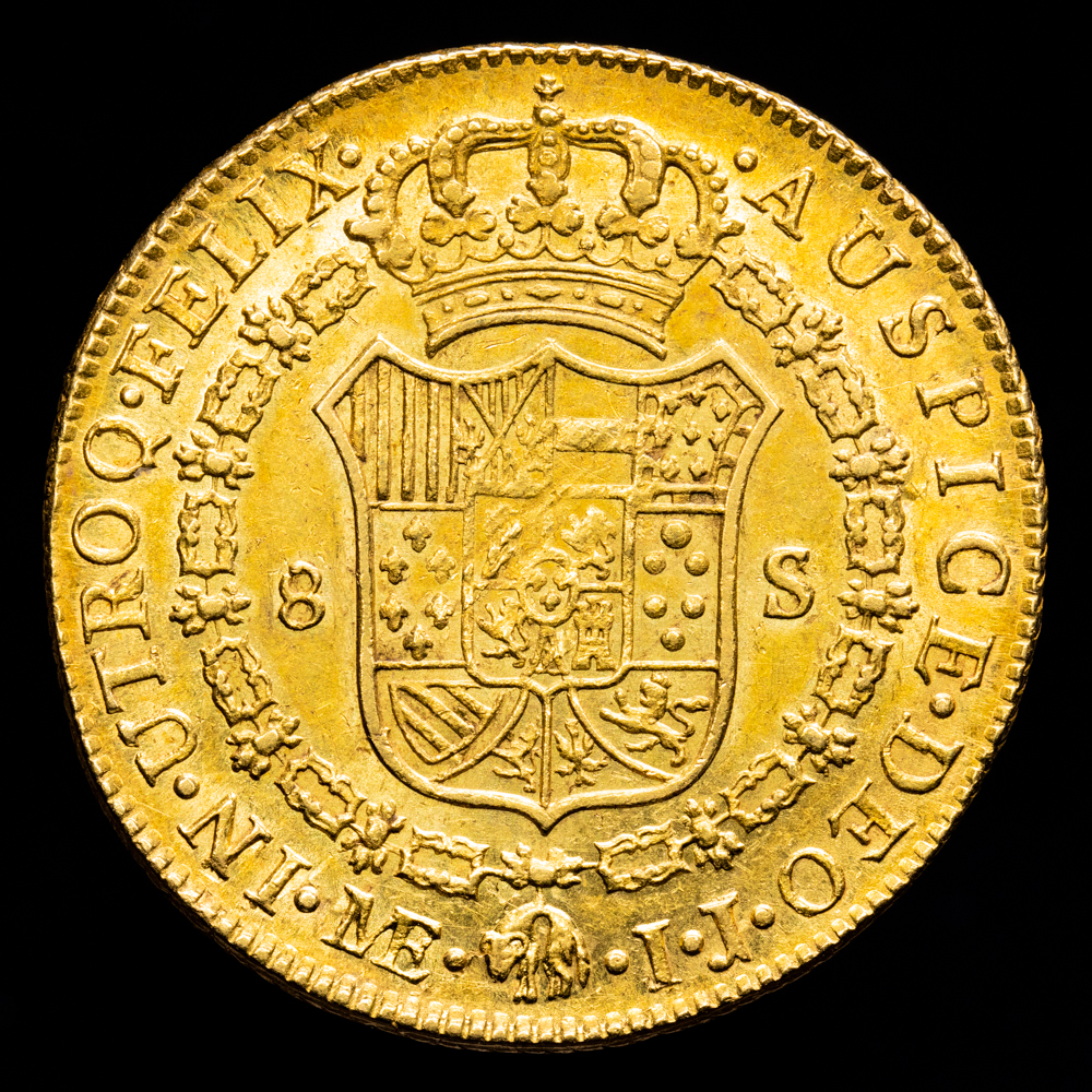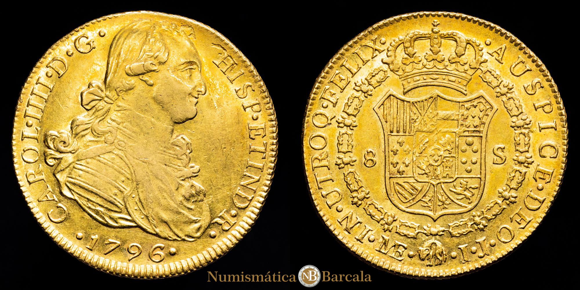 Numismática Barcala > Productos > Monarquia Española > Borbones > 1788-1808 Carlos IV > Carlos IV. 8 Escudos. (27,11 g.). Lima. 1796. Ensayador I·J. AC-1595. MBC+/EBC. Gran parte de brillo original .