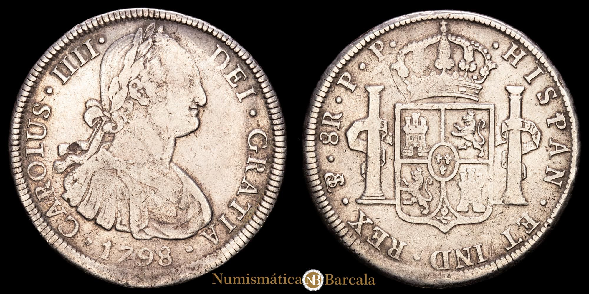 Carlos IV. 8 Reales (26,54 g.). Potosí. 1798. Ensayador P·P. AC-1002. MBC-.