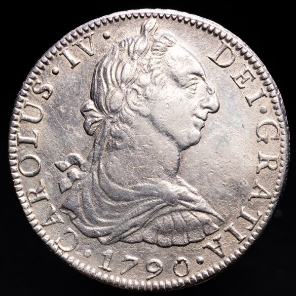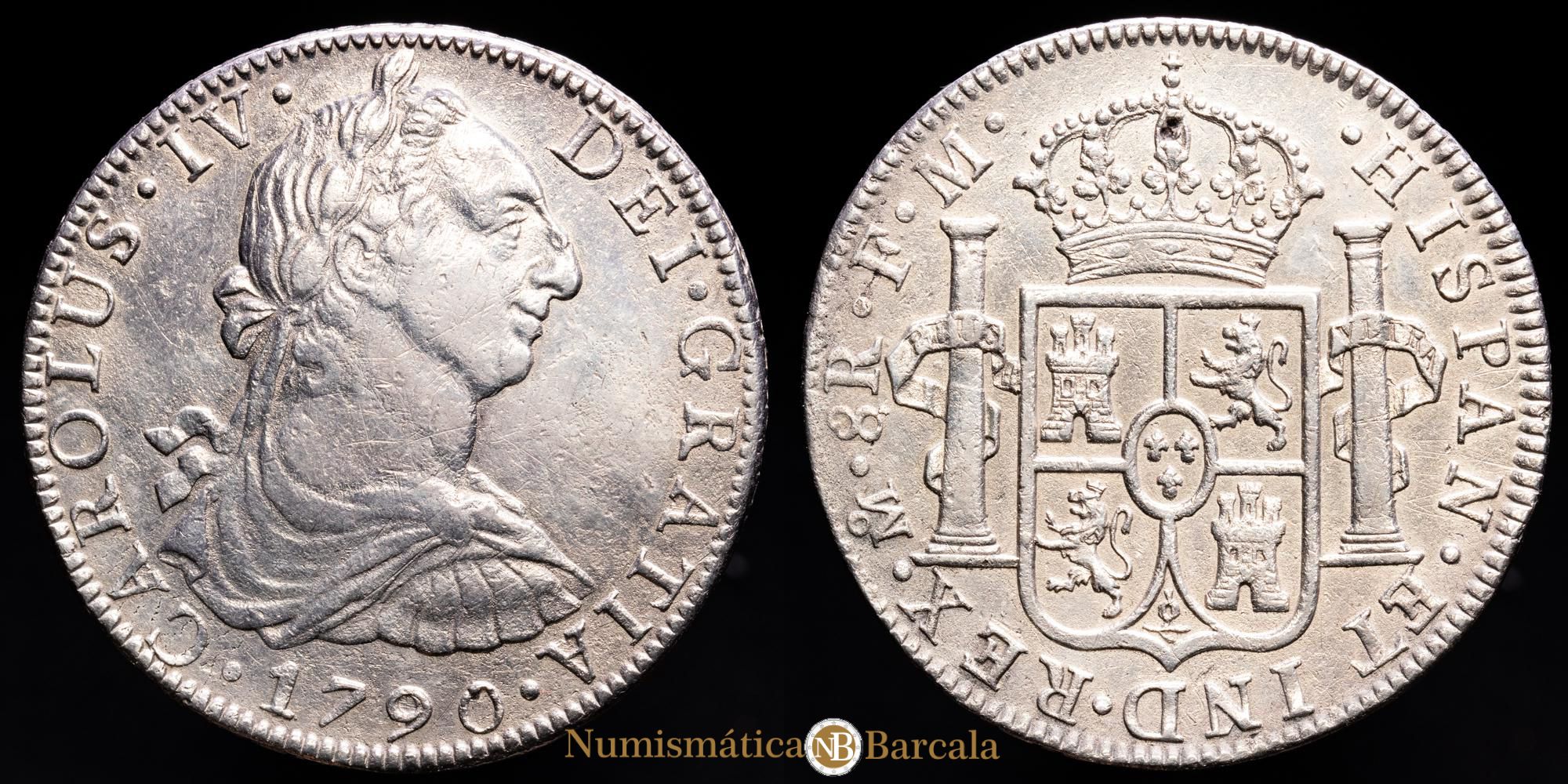 Carlos IV. 8 Reales. (26,69 g.). México. 1790. Ensayador F·M. AC-951. MBC+. Busto de Carlos III, ordinal de Carlos IV. Escasa.