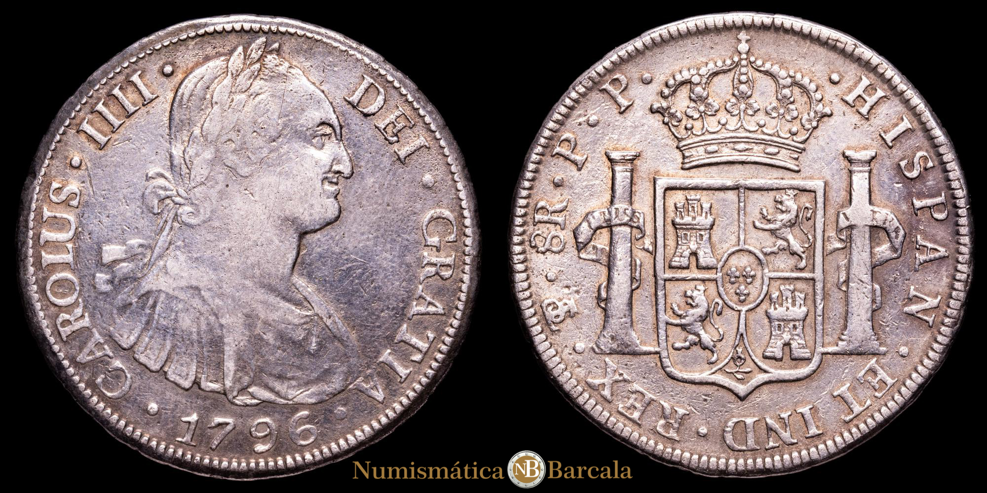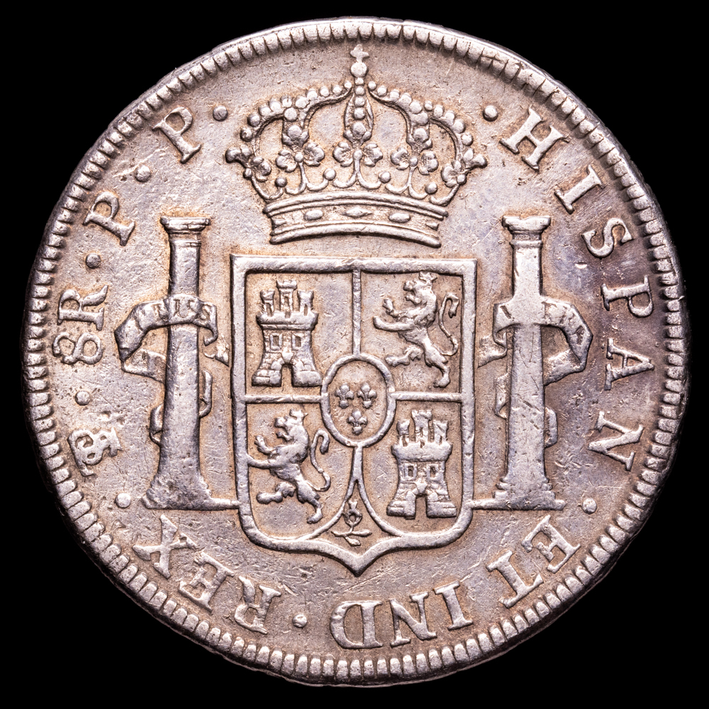Carlos IV. 8 Reales. (26,7 g.). Potosí. 1796. Ensayador P·P. AC-1000. MBC-. Limpiada
