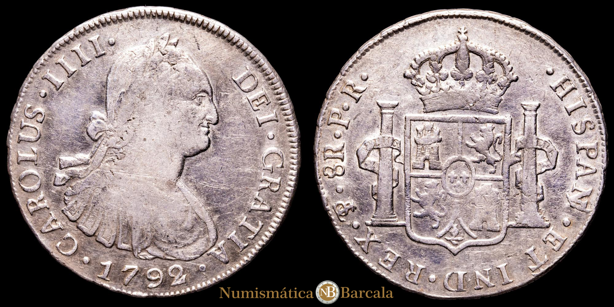 Numismática Barcala > Productos > Monarquia Española > Borbones > 1788-1808 Carlos IV > Carlos IV. 8 Reales. (26,71 g.). Potosí. 1792. Ensayador P·R. AC-992. MBC+. Restos de brillo original.