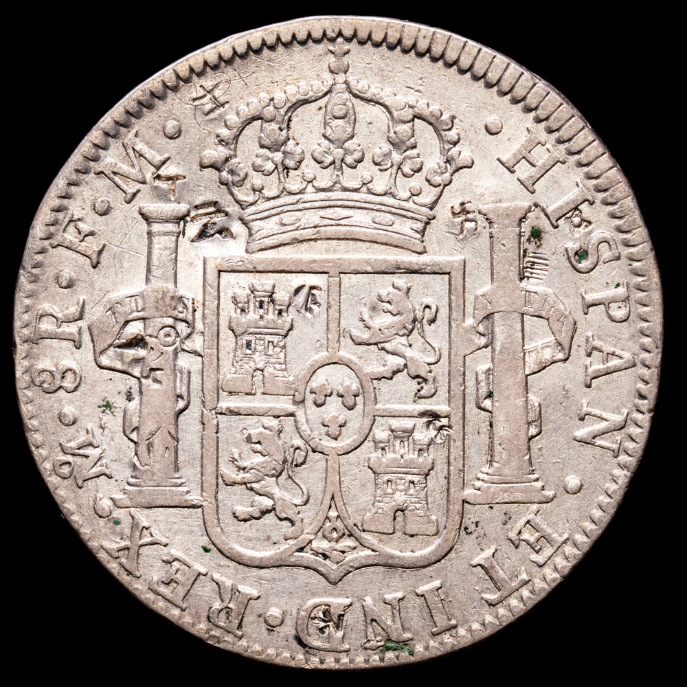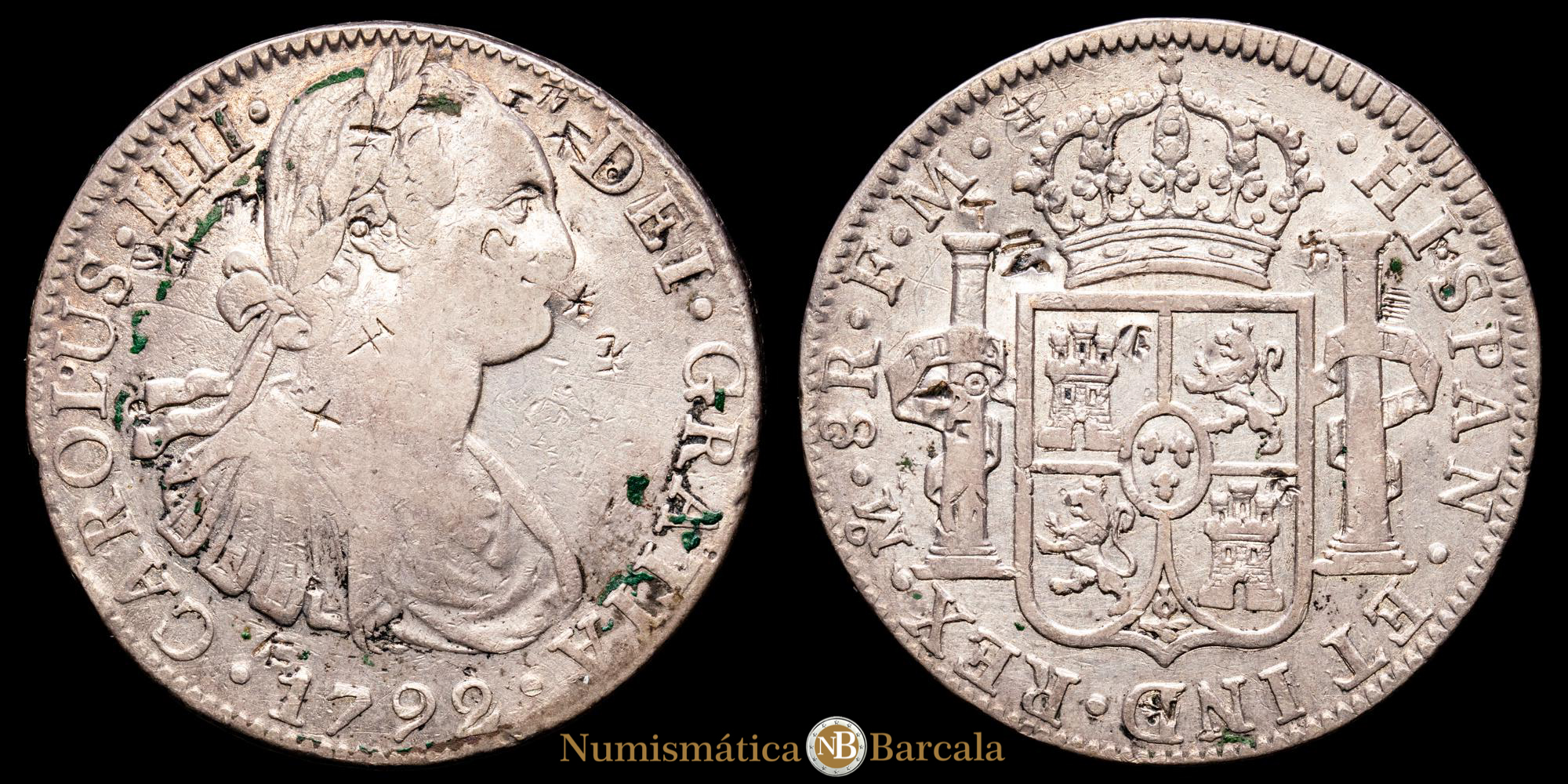 Carlos IV. 8 Reales. (26,73 g.). México. 1792. Ensayador F·M. Aureo y Calicó 954. MBC+. Resellos chinos.