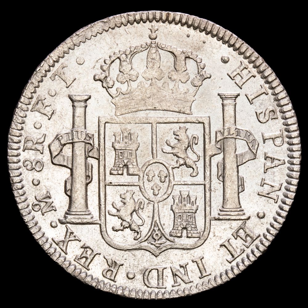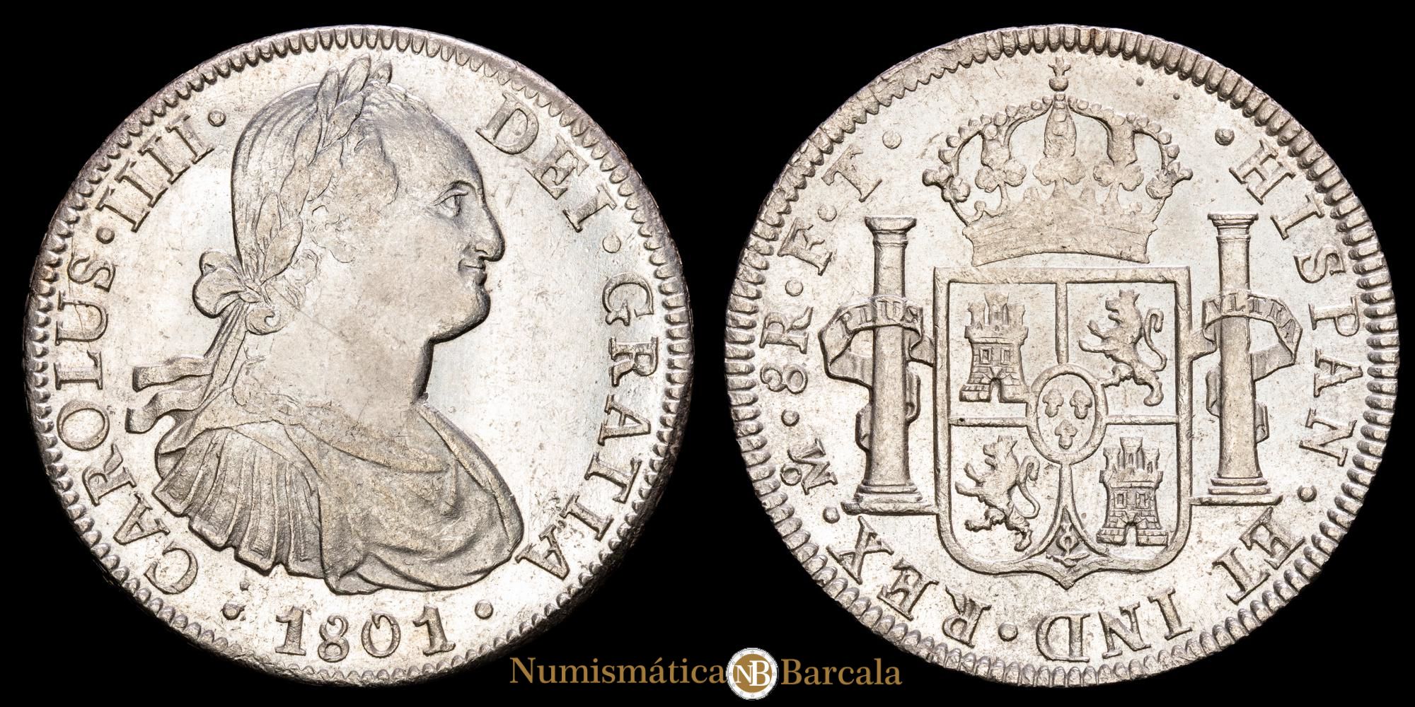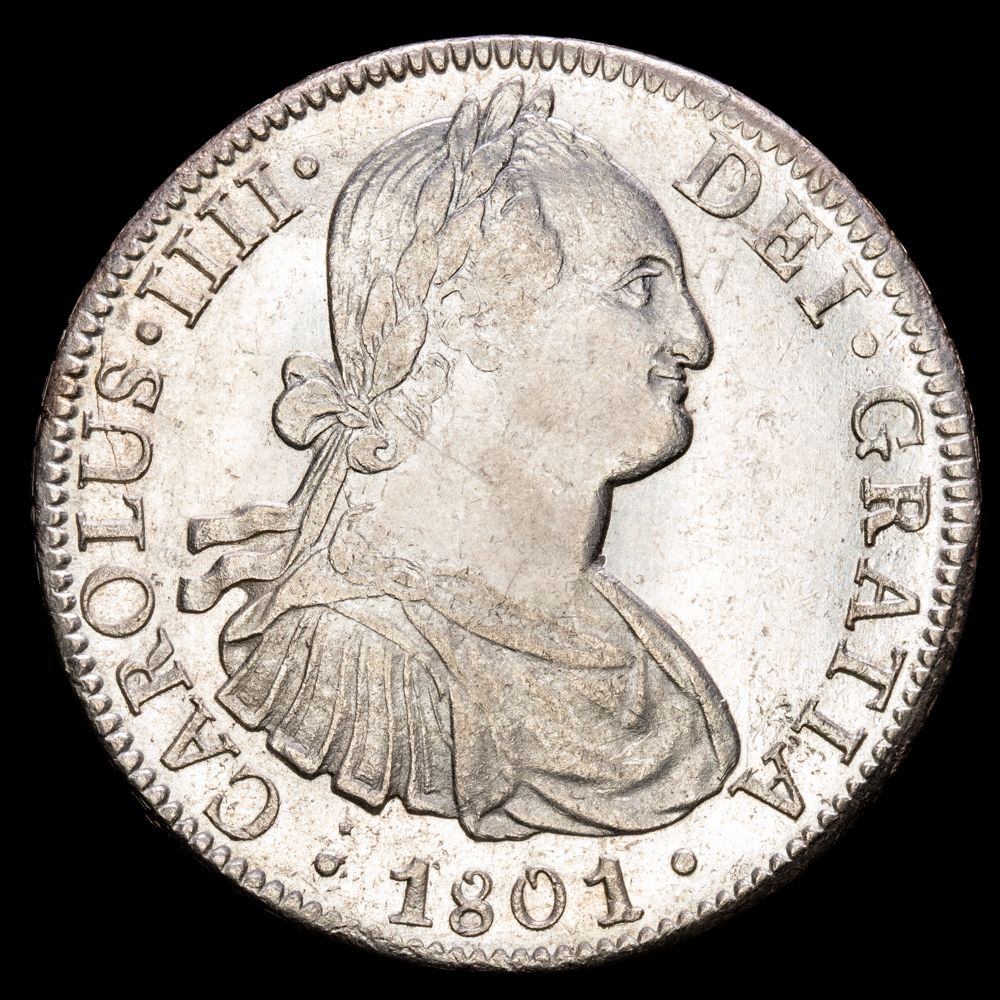 Carlos IV. 8 Reales (26,73 g.). México. 1801. Ensayador F.T. Brillo original. AC-972. EBC.