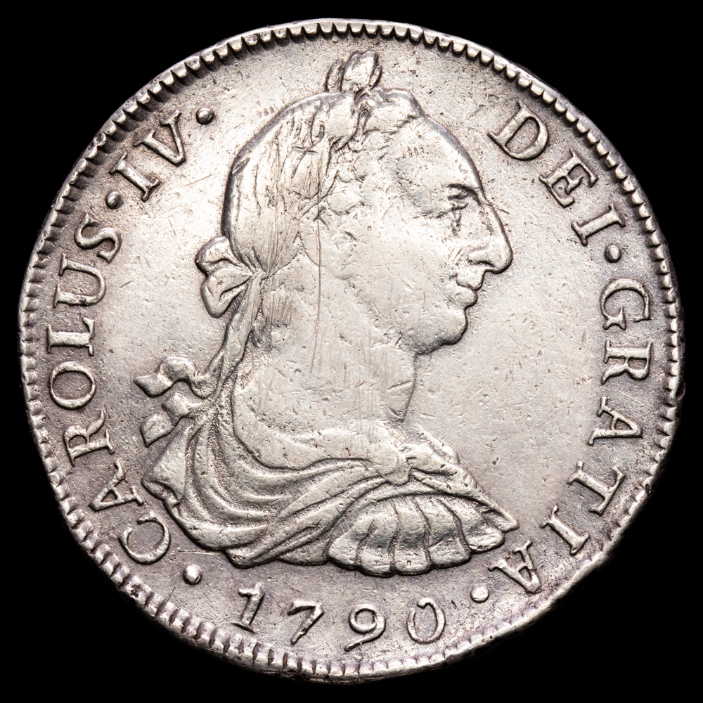 Numismática Barcala > Productos > Monarquia Española > Borbones > 1788-1808 Carlos IV > Carlos IV. 8 reales (26,74 g.). Lima. 1790. Ensayador I·J. AC-904. VF. Busto de Carlos III ordinal de Carlos IV.