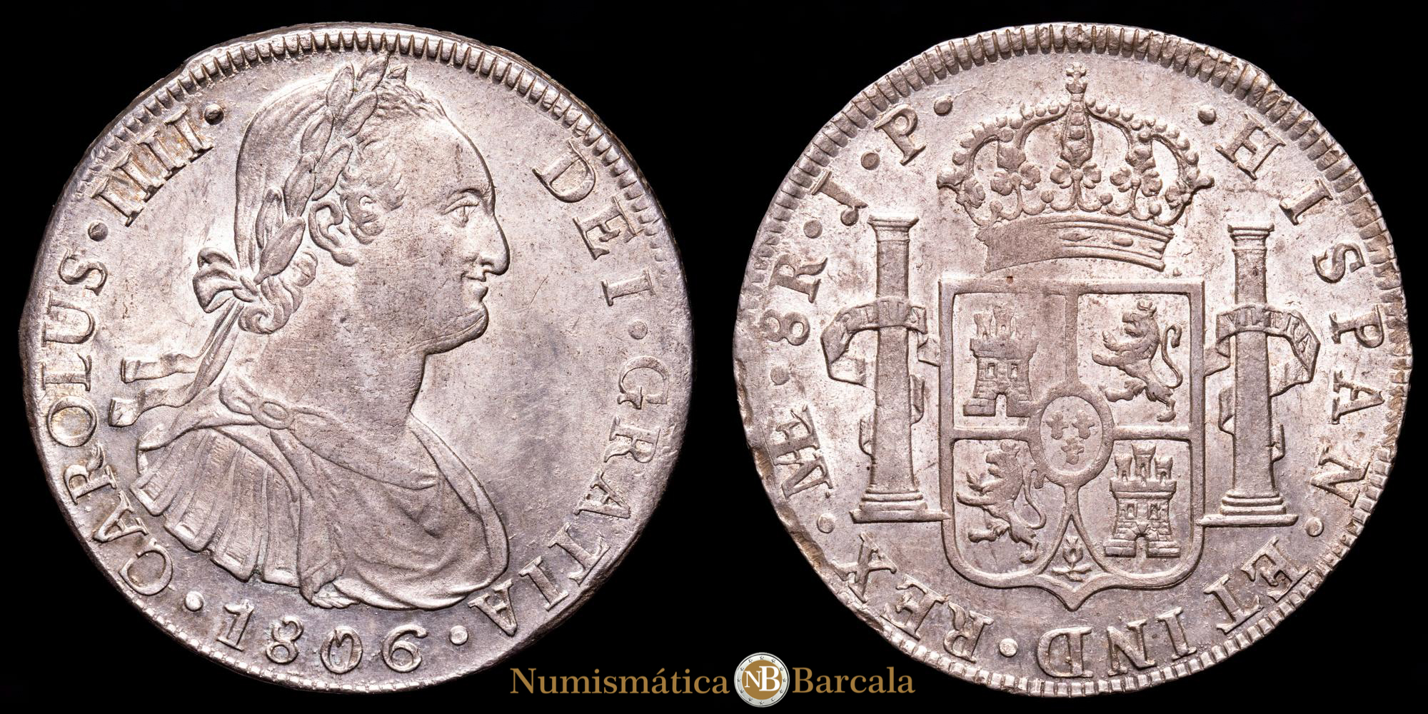 Carlos IV. 8 Reales. (26,91 g.). Lima. 1806. Ensayador J·P. Aureo y Calicó-926. EBC+/SC-. Restos de brillo original.