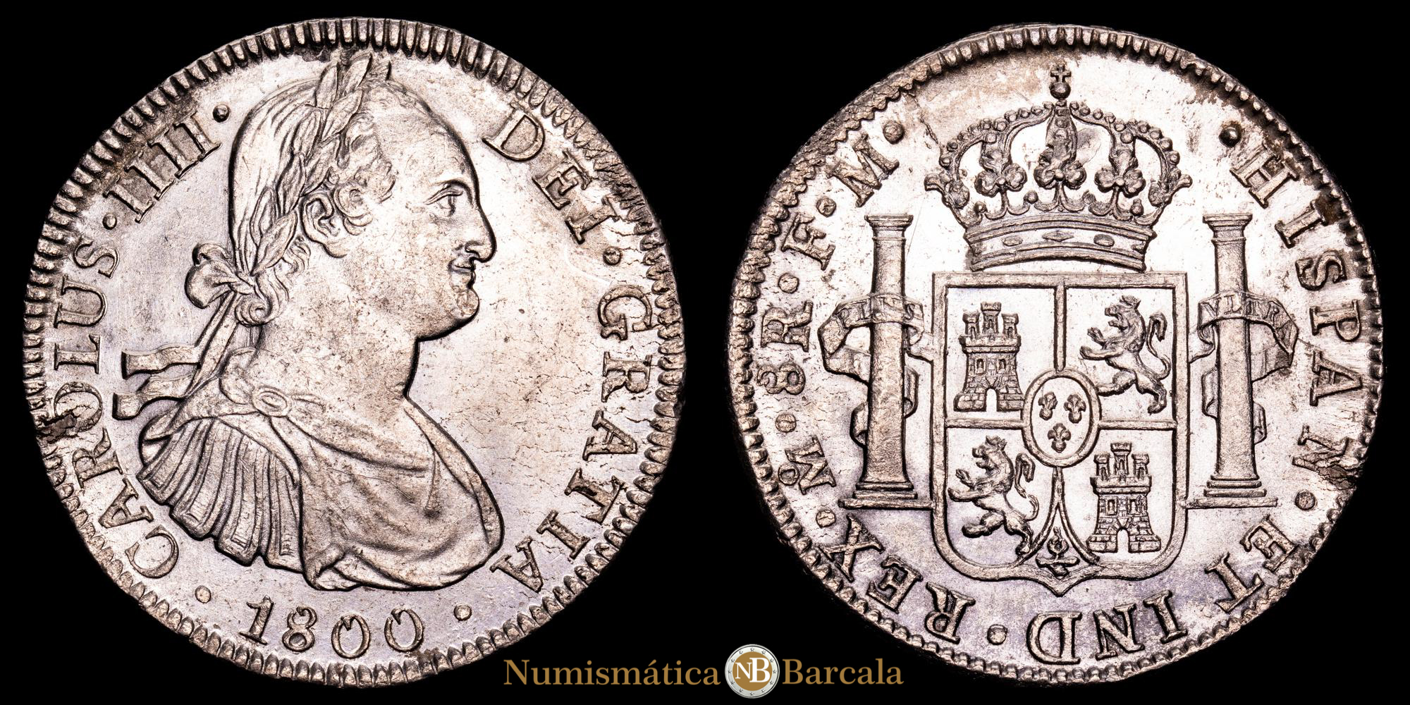 Numismática Barcala > Productos > Monarquia Española > Borbones > 1788-1808 Carlos IV > Carlos IV. 8 Reales. (26,91 g.). México. 1800. Ensayador F·M. AC-965. EBC+. Restos de brillo original.