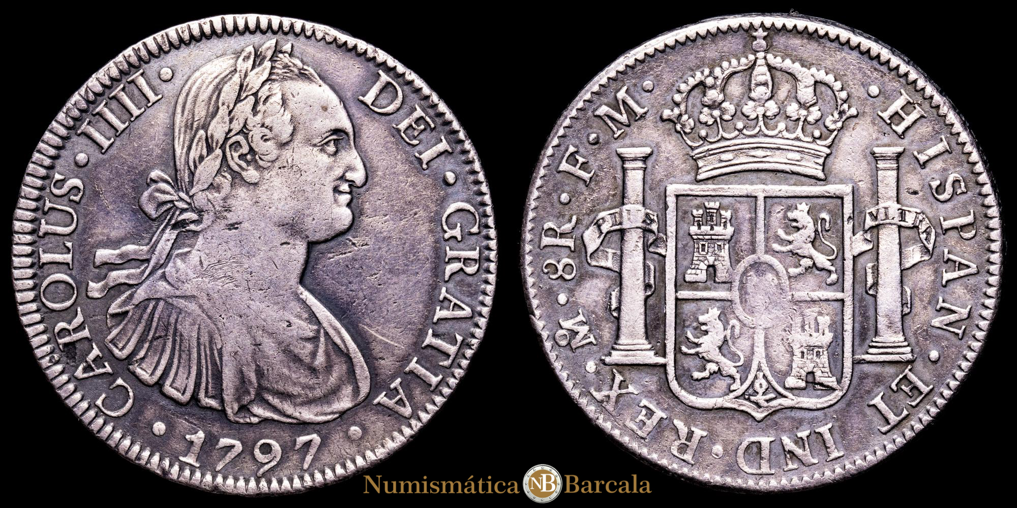 Carlos IV. 8 Reales. (26,95 g.). México. 1797. Ensayador F·M. Aureo y Calicó-960. MBC+.