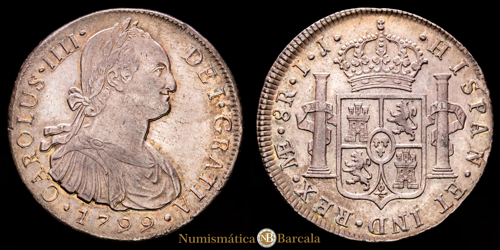 Numismática Barcala > Productos > Monarquia Española > Borbones > 1788-1808 Carlos IV > Carlos IV. 8 Reales. (26,96 g.). Lima. 1799. Ensayador I·J. Aureo y Calicó-917. EBC. Bonita pátina.