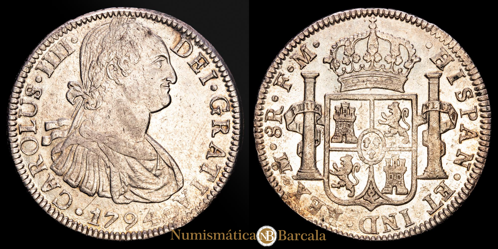 Carlos IV. 8 Reales (26,97 g.). 1794. México. Ensayador F.M. EBC